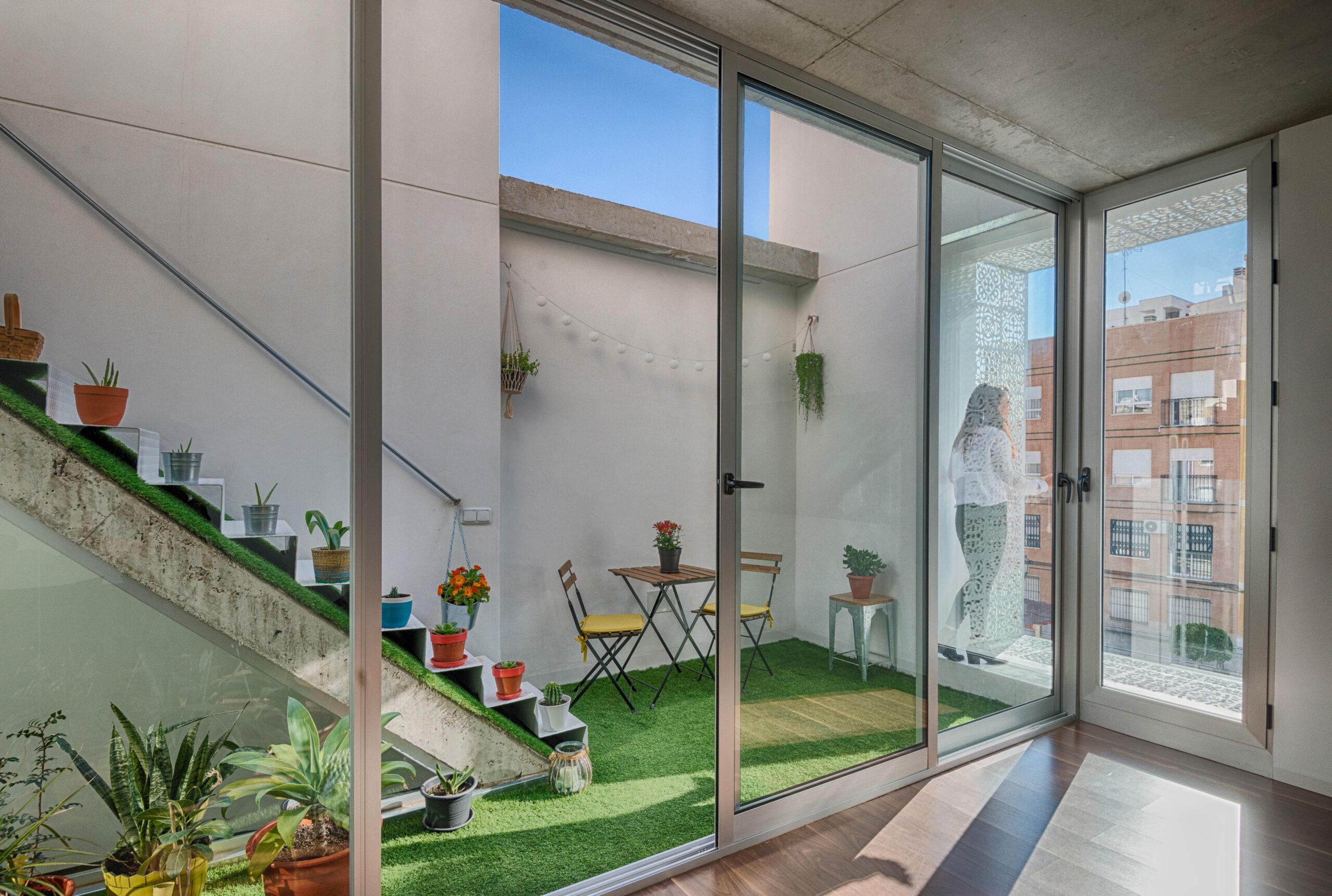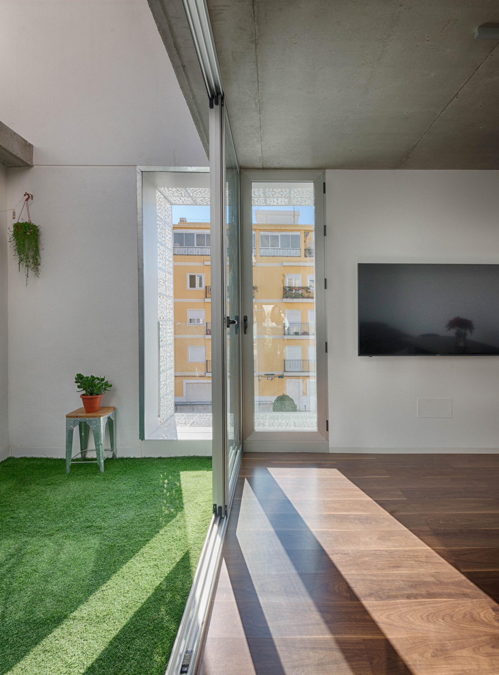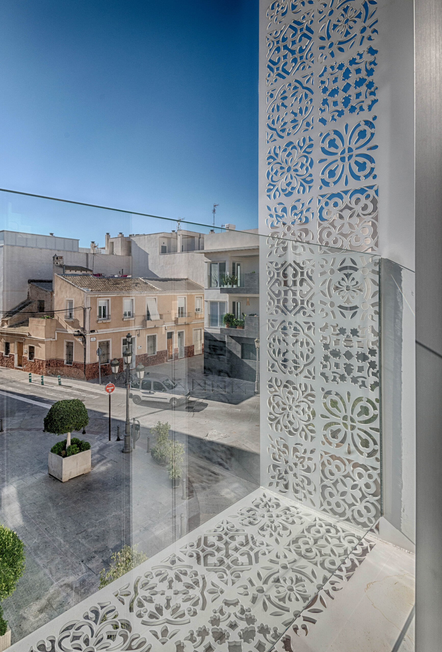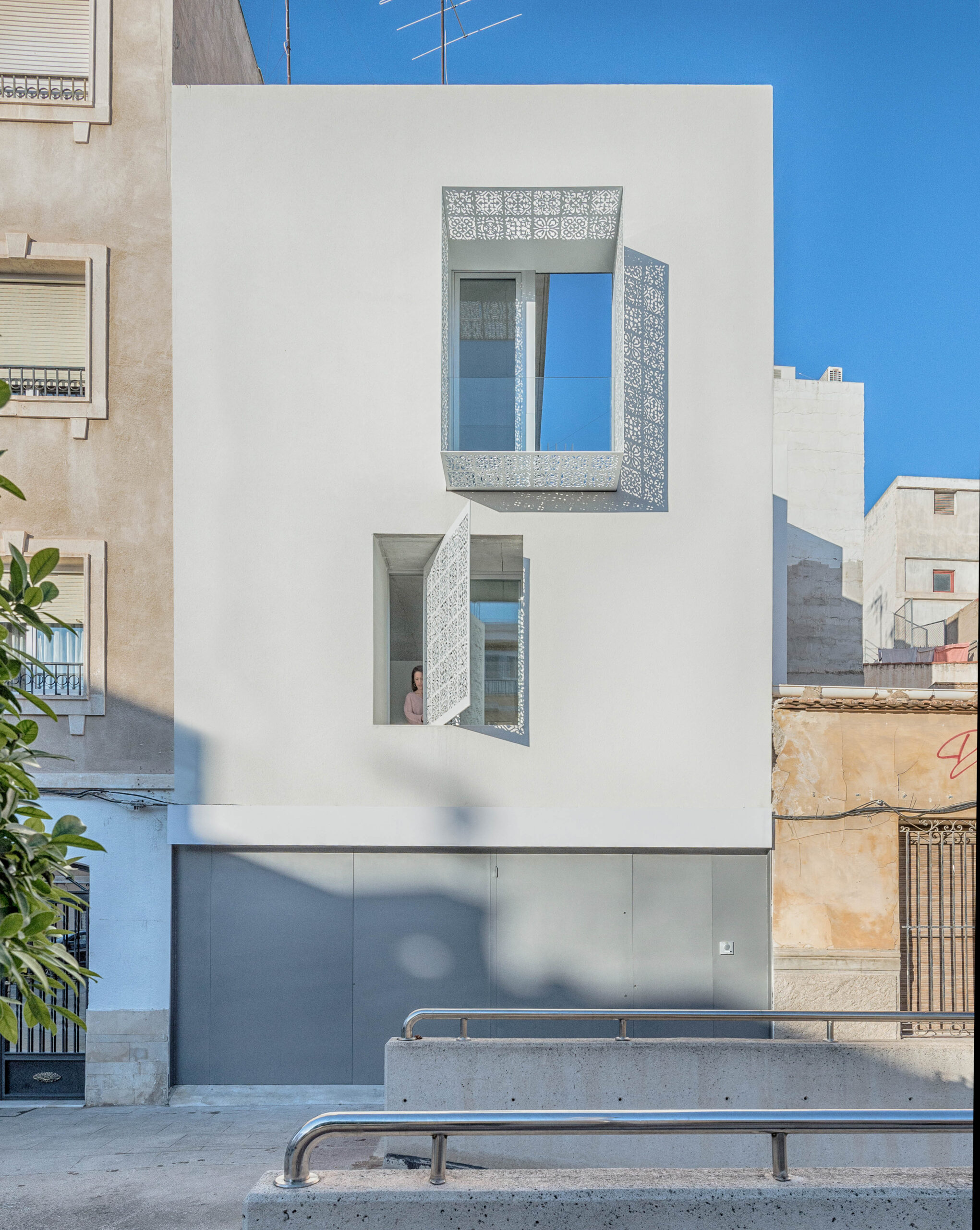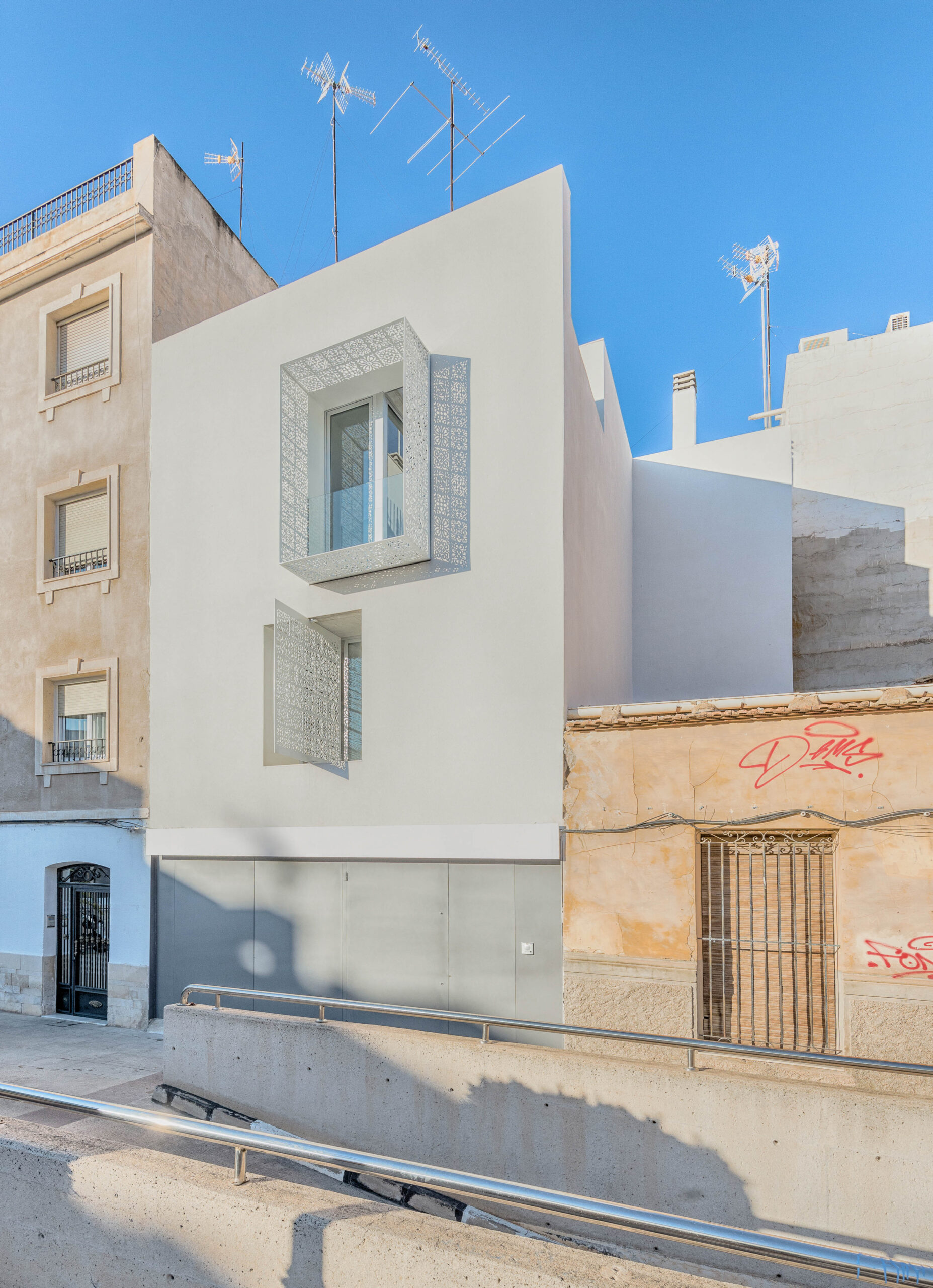 Casa Carmen se integra en el tejido histórico del Raval de Sant Joan de Elche, en una plaza de ensanche de traza medieval. El proyecto dialoga con la memoria del lugar mediante una fachada contemporánea orientada al sur. Una celosía de acero reinterpretada conecta visualmente la vivienda con la plaza, respetando la cadencia y la atmósfera tranquila del barrio.