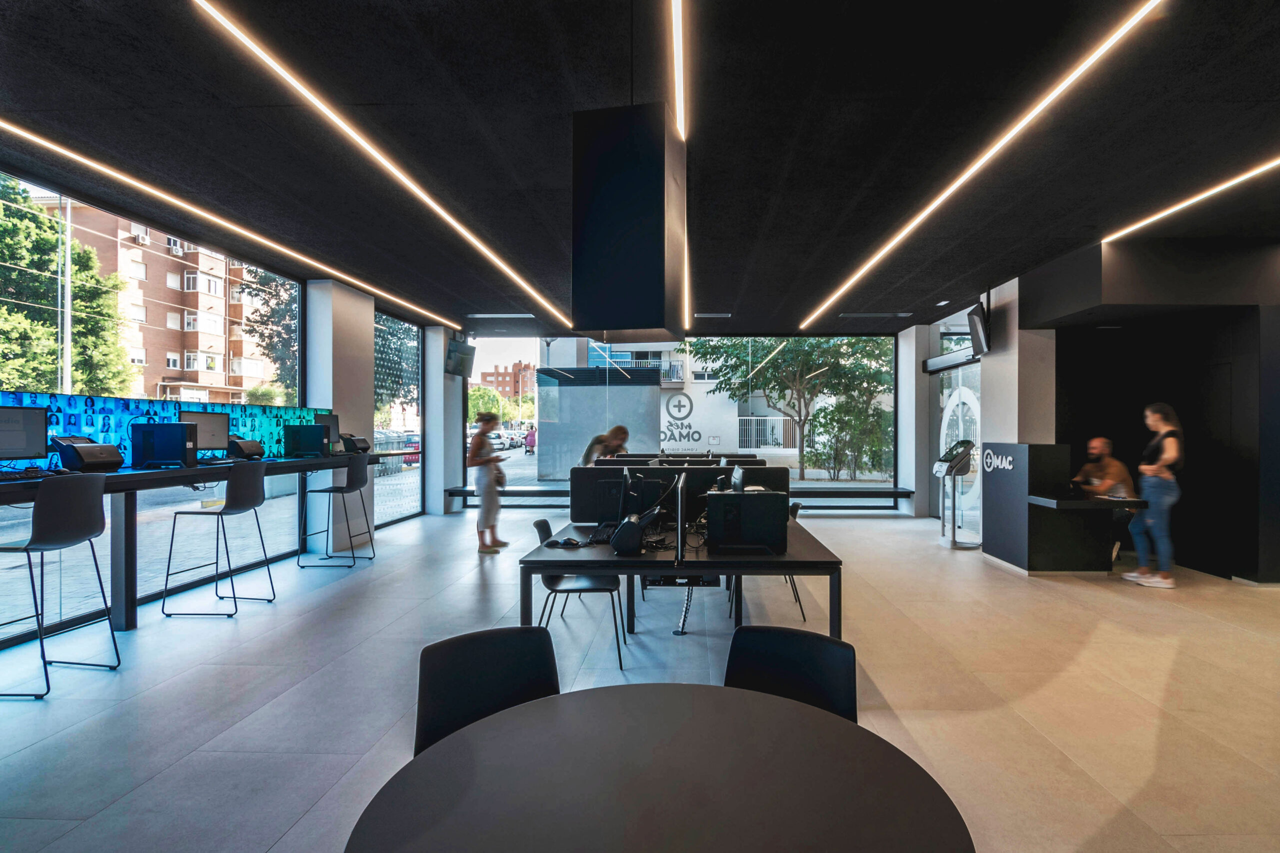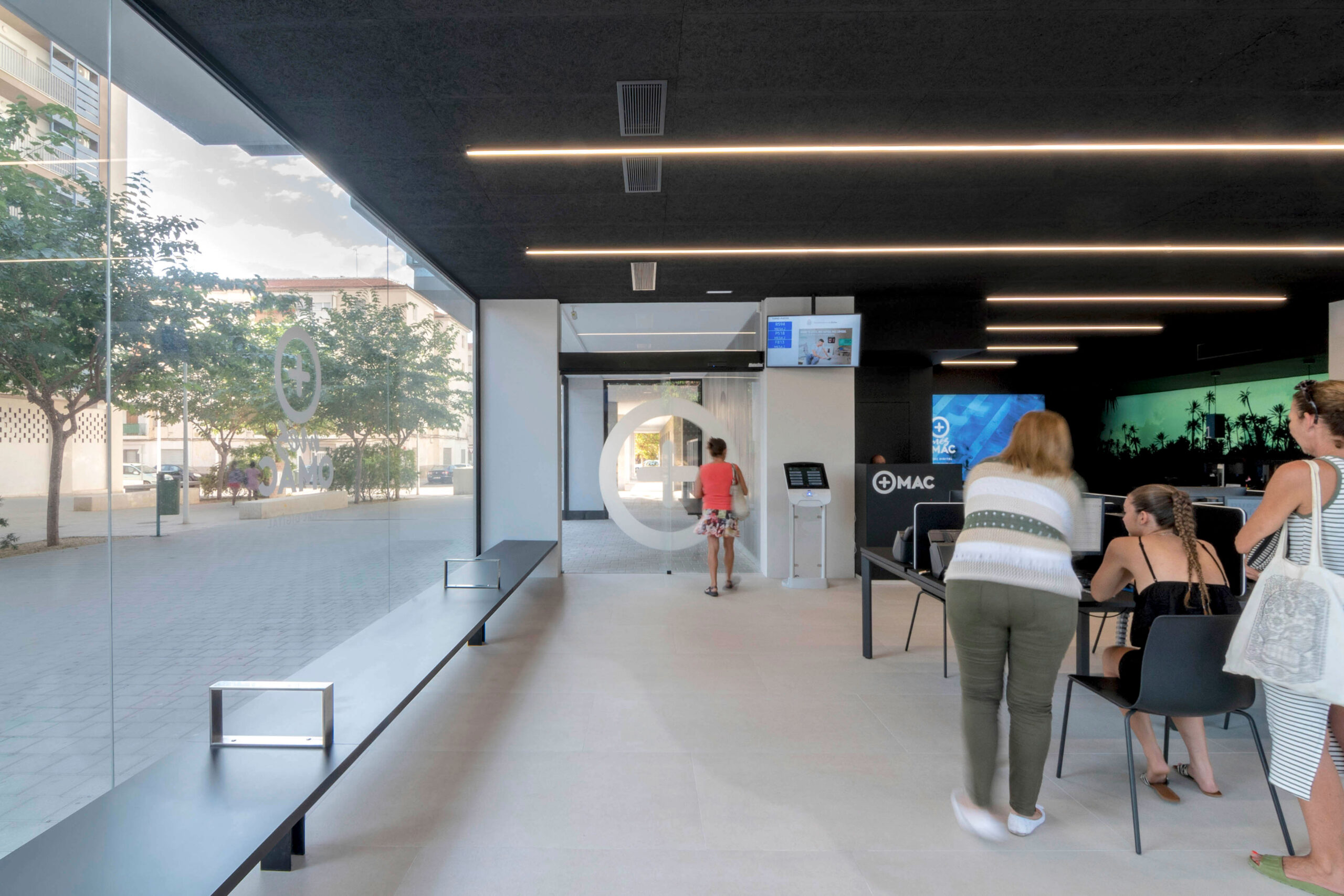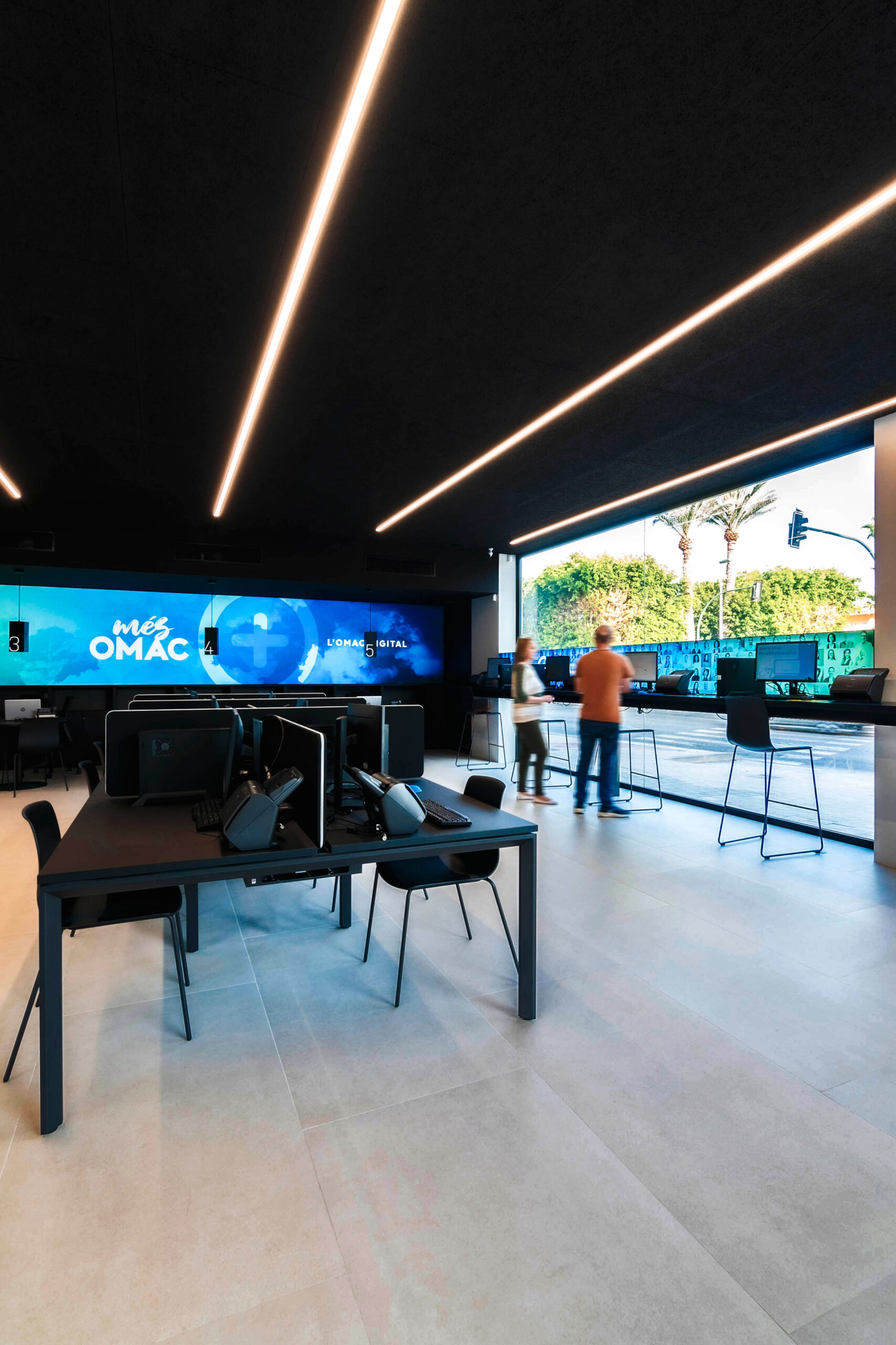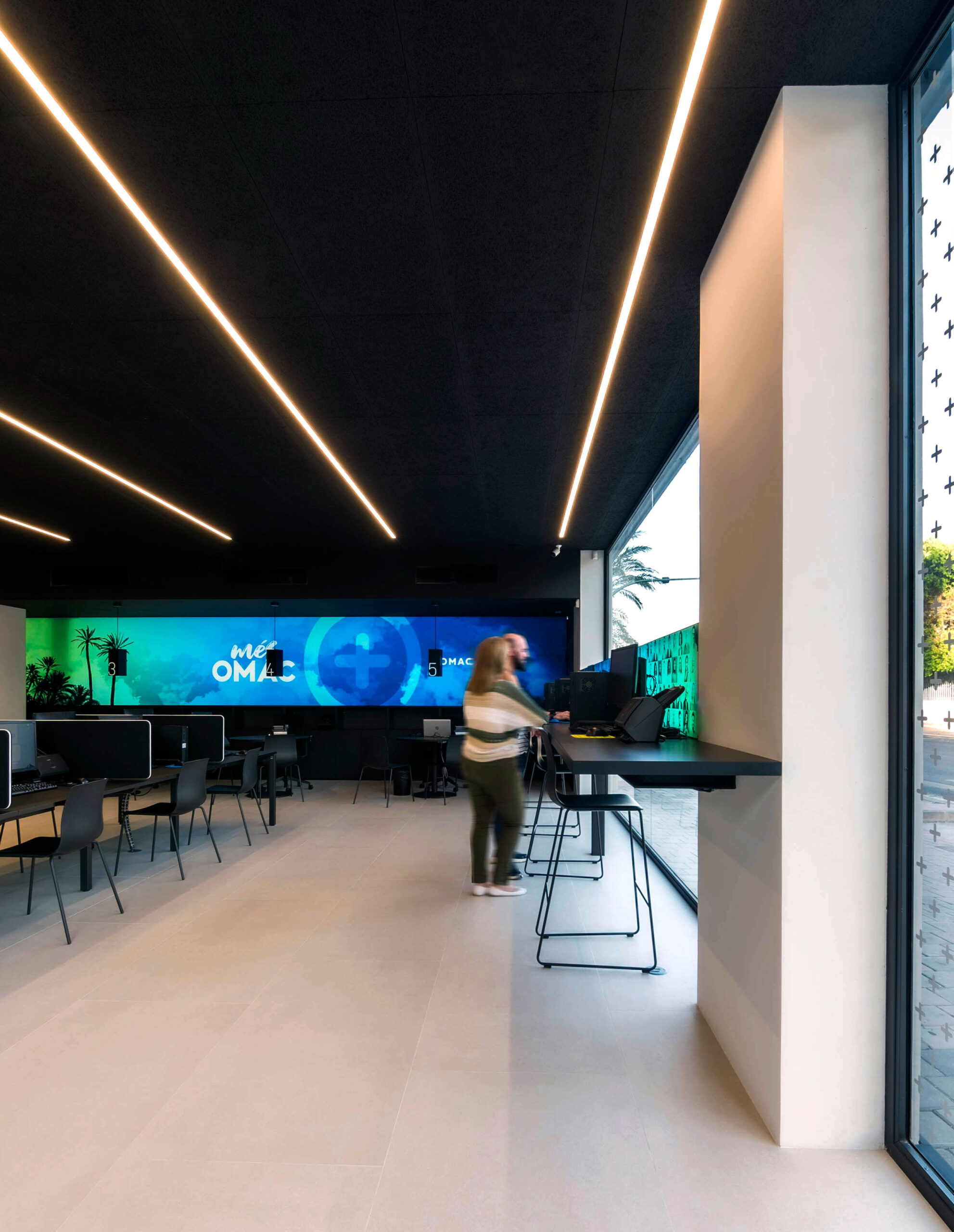 Ubicada en el barrio de San Antón, la primera OMAC digital de Elche se erige como proyecto piloto para la modernización administrativa. La intervención, en un local de 200 m², busca reducir la brecha digital mediante una arquitectura accesible. Su diseño redefine la relación institucional, transformando la oficina en un espacio transparente y permeable conectado a la plaza interior.