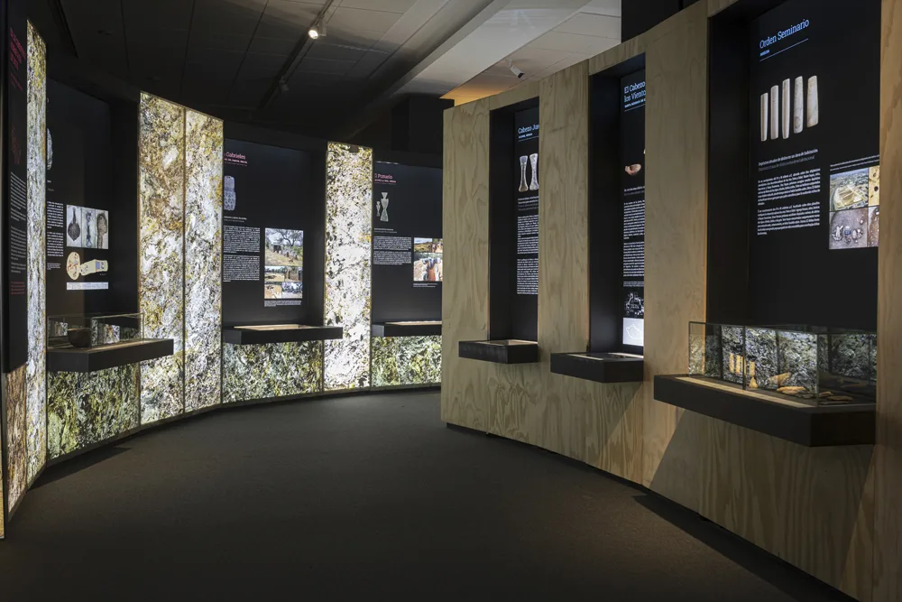 En el estudio diseñamos una museografía inmersiva que evocó la arquitectura de las cuevas mediterráneas: muros de DM y cajones articulados recrearon el paisaje arqueológico, mientras que estalactitas y estalagmitas transformadas en puntos de luz y altares guiaron al visitante en un recorrido entre la vida cotidiana y el ritual. Cada espacio invitó a experimentar una narrativa sensorial y arqueológica que conecta tiempos y culturas.