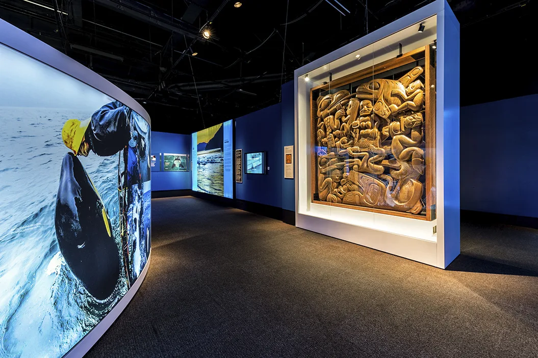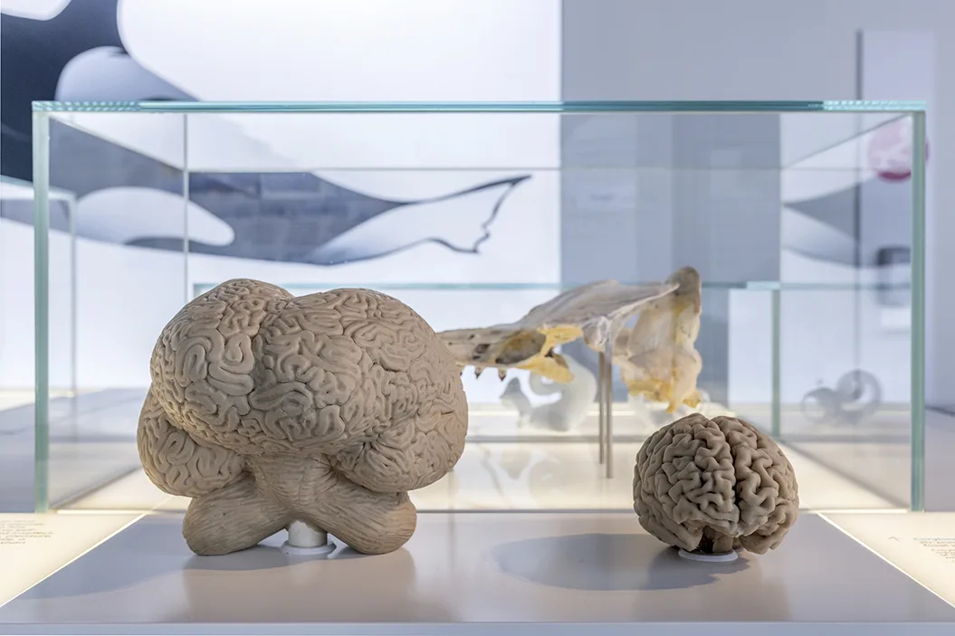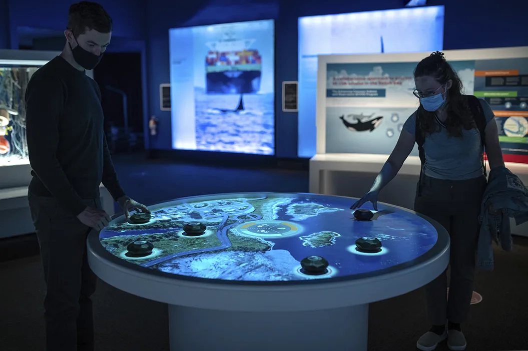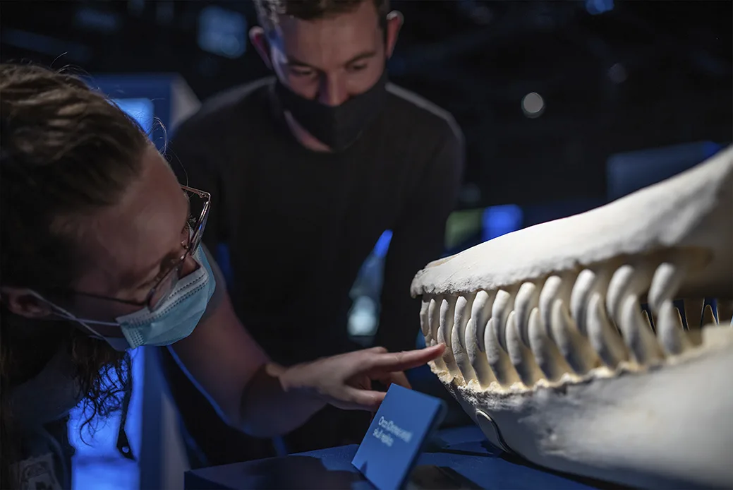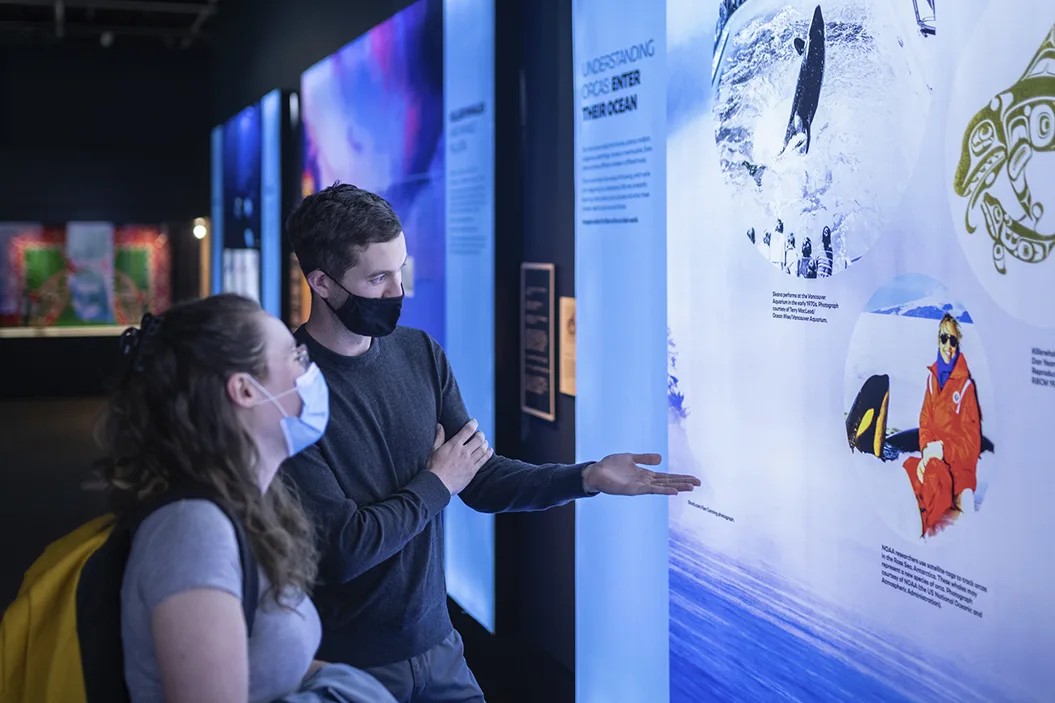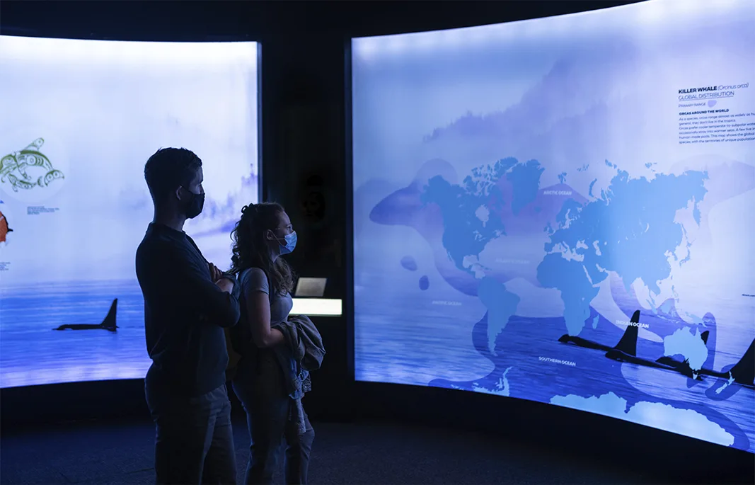 En la exposición, los visitantes exploran el mundo de las orcas desde varias perspectivas. La primera sección profundiza en su biología y zoología, revelando detalles sobre su anatomía, comportamiento, inteligencia y estructura social compleja. A través de esta visión, los asistentes pueden apreciar la extraordinaria biología de estas majestuosas criaturas.