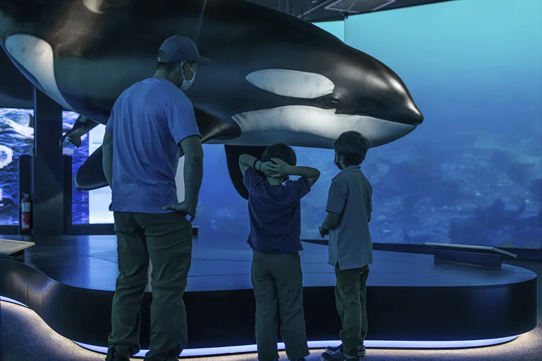 La exposición ORCAS: Nuestro futuro compartido ofrece una experiencia inmersiva única que transporta a los visitantes al fascinante mundo de las orcas. Diseñada como una instalación internacional y temporal, esta muestra itinerante se destaca por su enfoque multisensorial, combinando esculturas a tamaño real de estos impresionantes mamíferos marinos, iluminación ambiental y sonido envolvente para crear una experiencia que supera las exhibiciones convencionales.