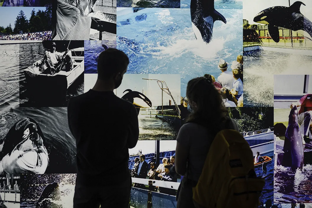 Finalmente, la exposición aborda la realidad de la vida de las orcas en cautiverio y la lucha por su liberación, destacando problemas como la cautividad en acuarios y la caza ilegal. Este aspecto promueve la conciencia sobre la conservación y el bienestar de las orcas.