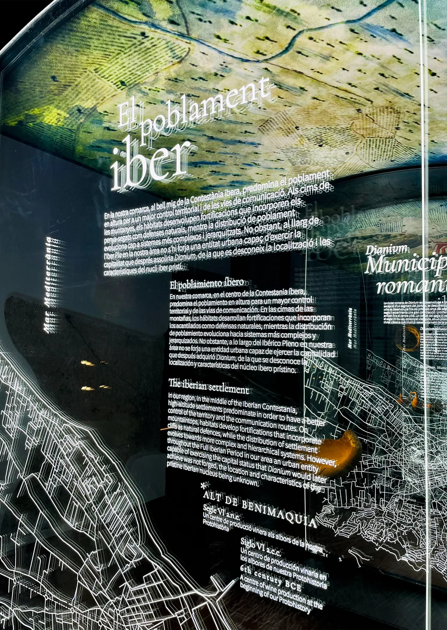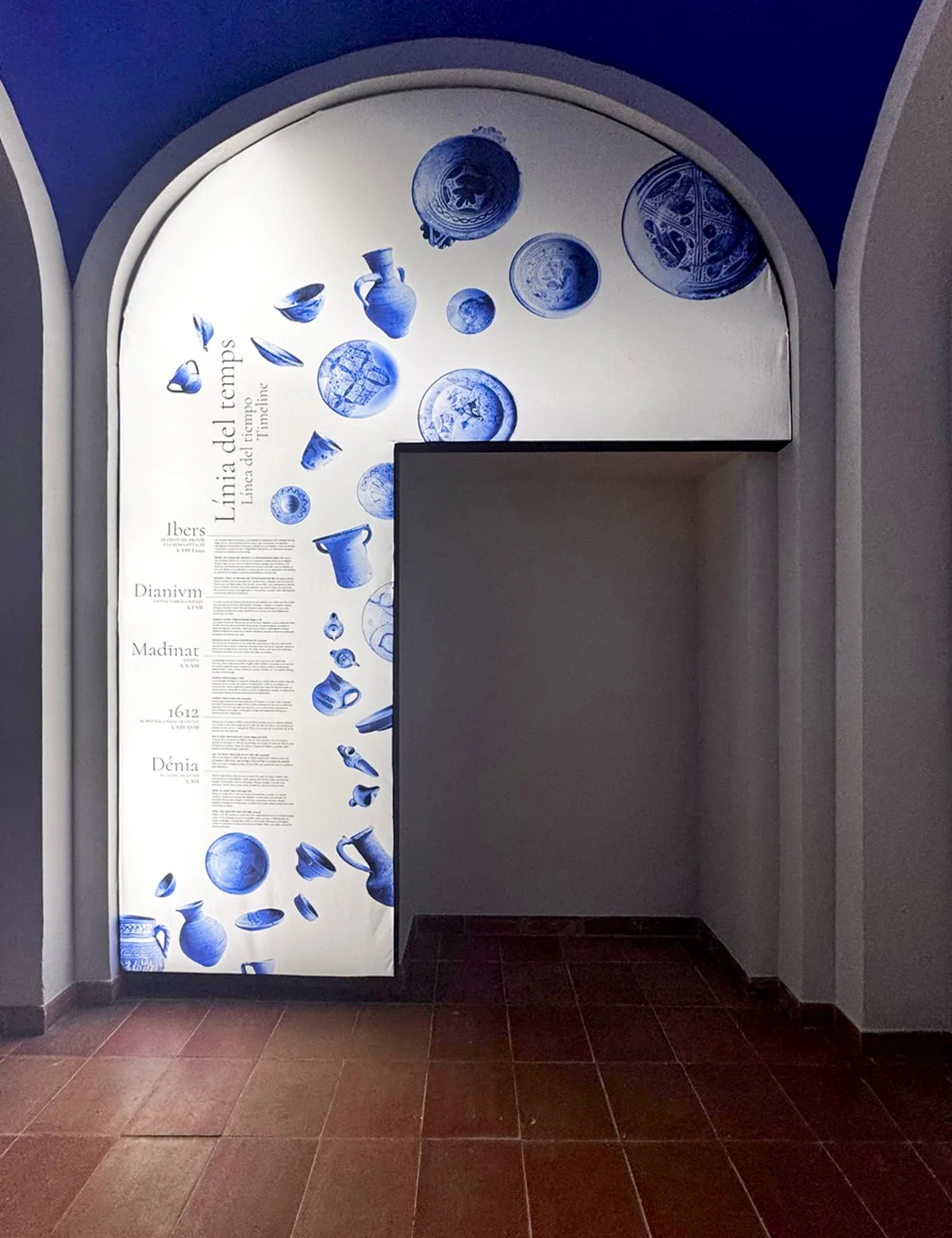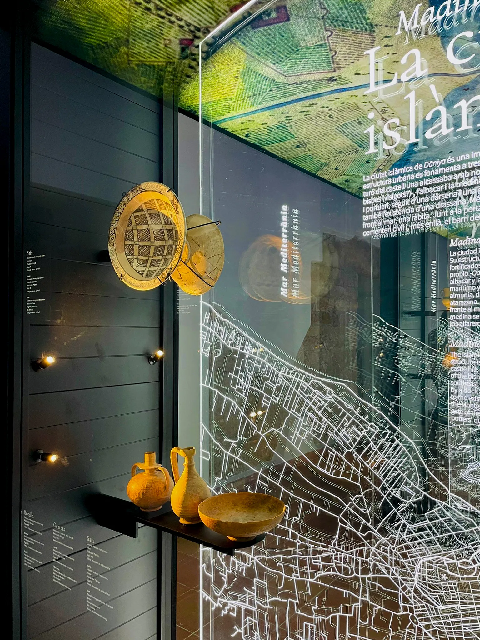 Cada arco incorpora vitrinas con piezas arqueológicas, que cuentan la historia de Denia desde dos perspectivas: