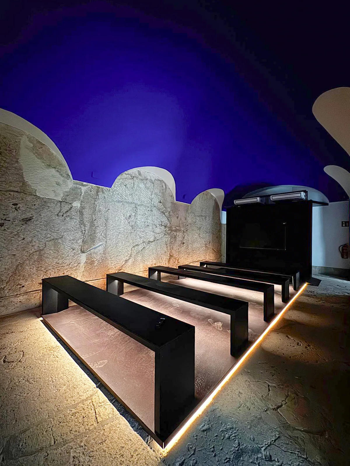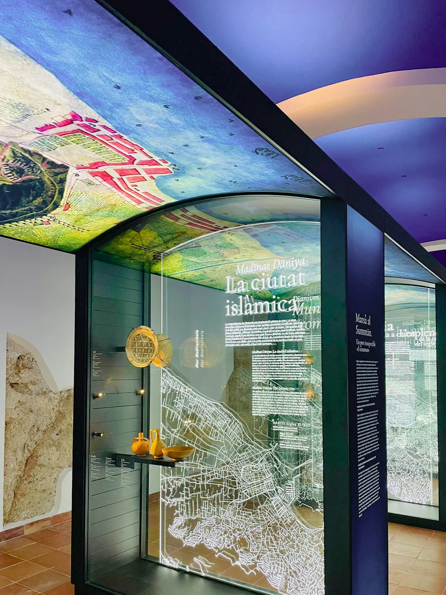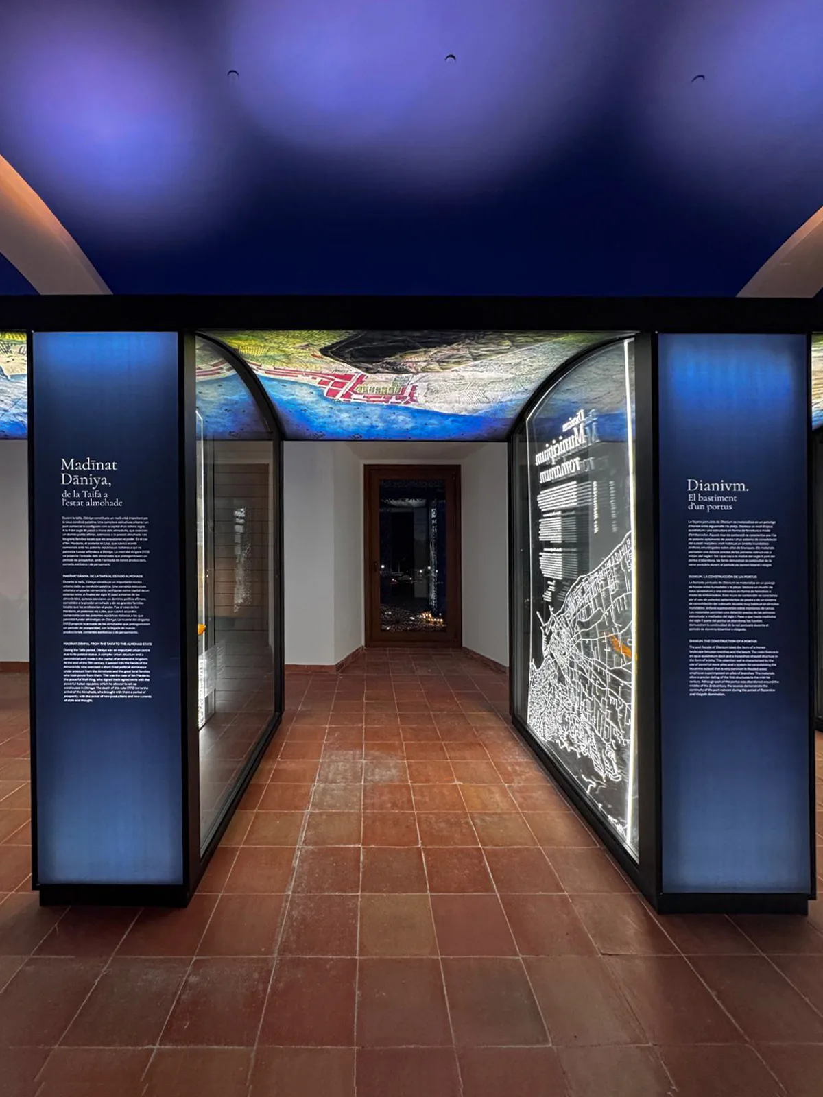 El recorrido finaliza en una sala de proyección, donde las imágenes y los recursos digitales amplían la información y dan vida a la narrativa expositiva. Este espacio permite al visitante profundizar en la historia de Denia a través de un formato dinámico e inmersivo.
