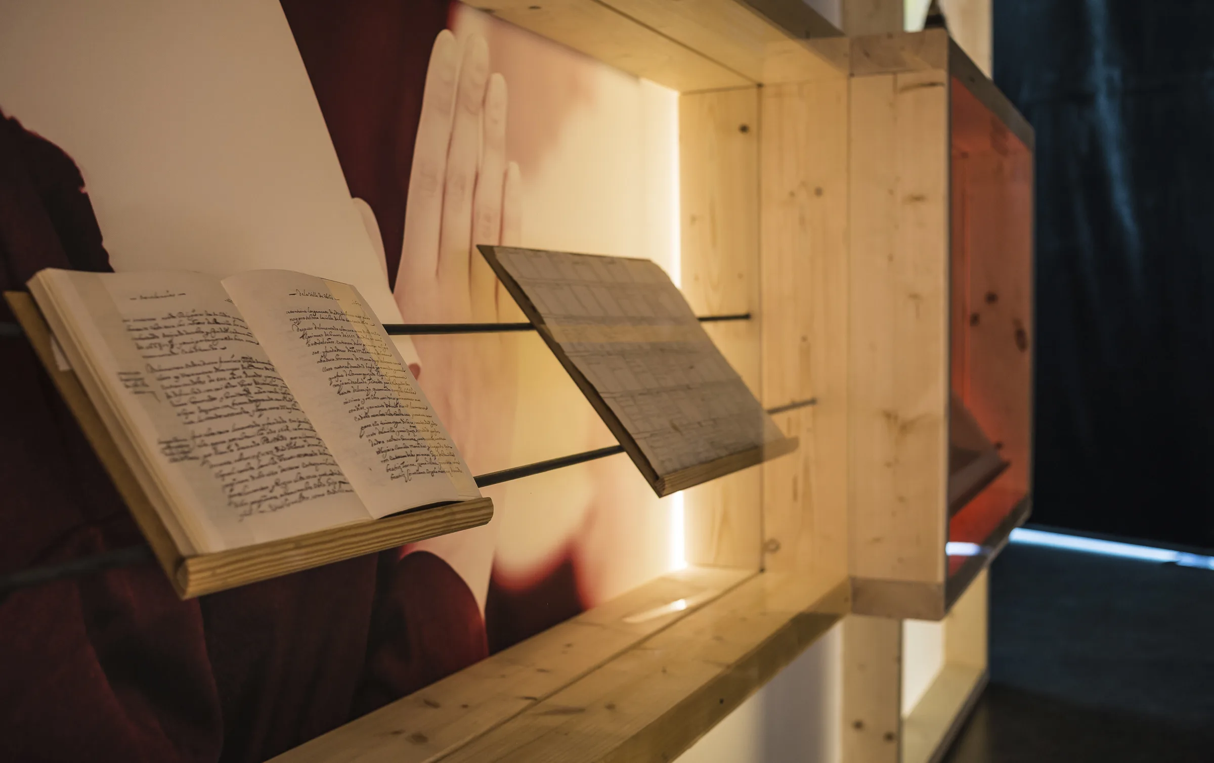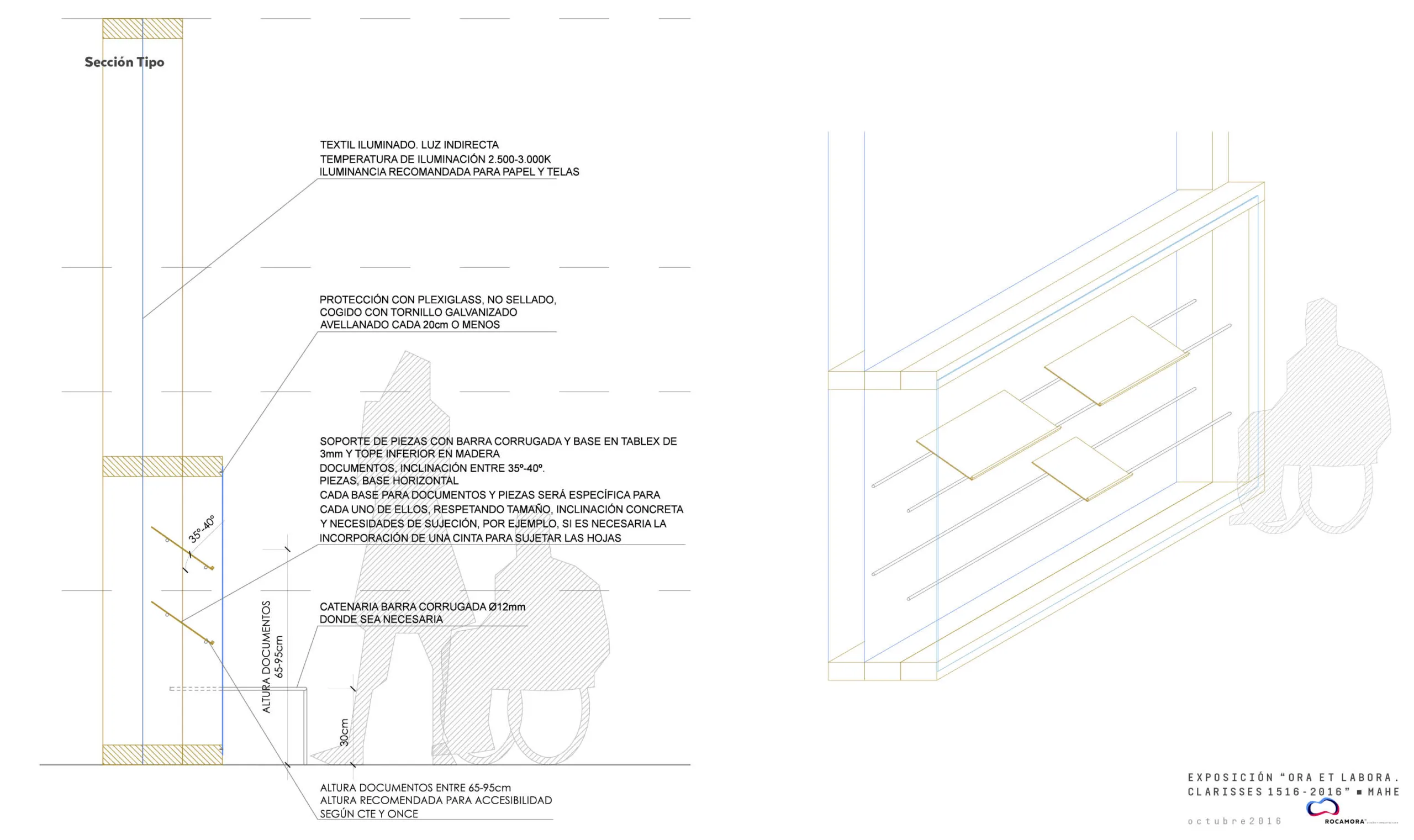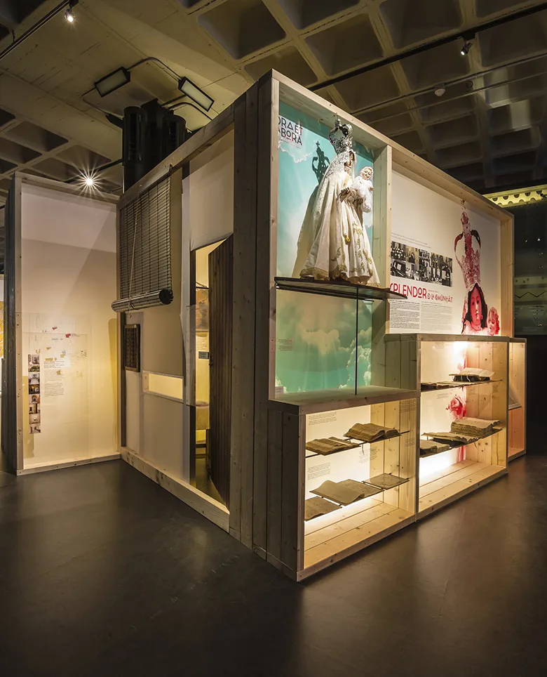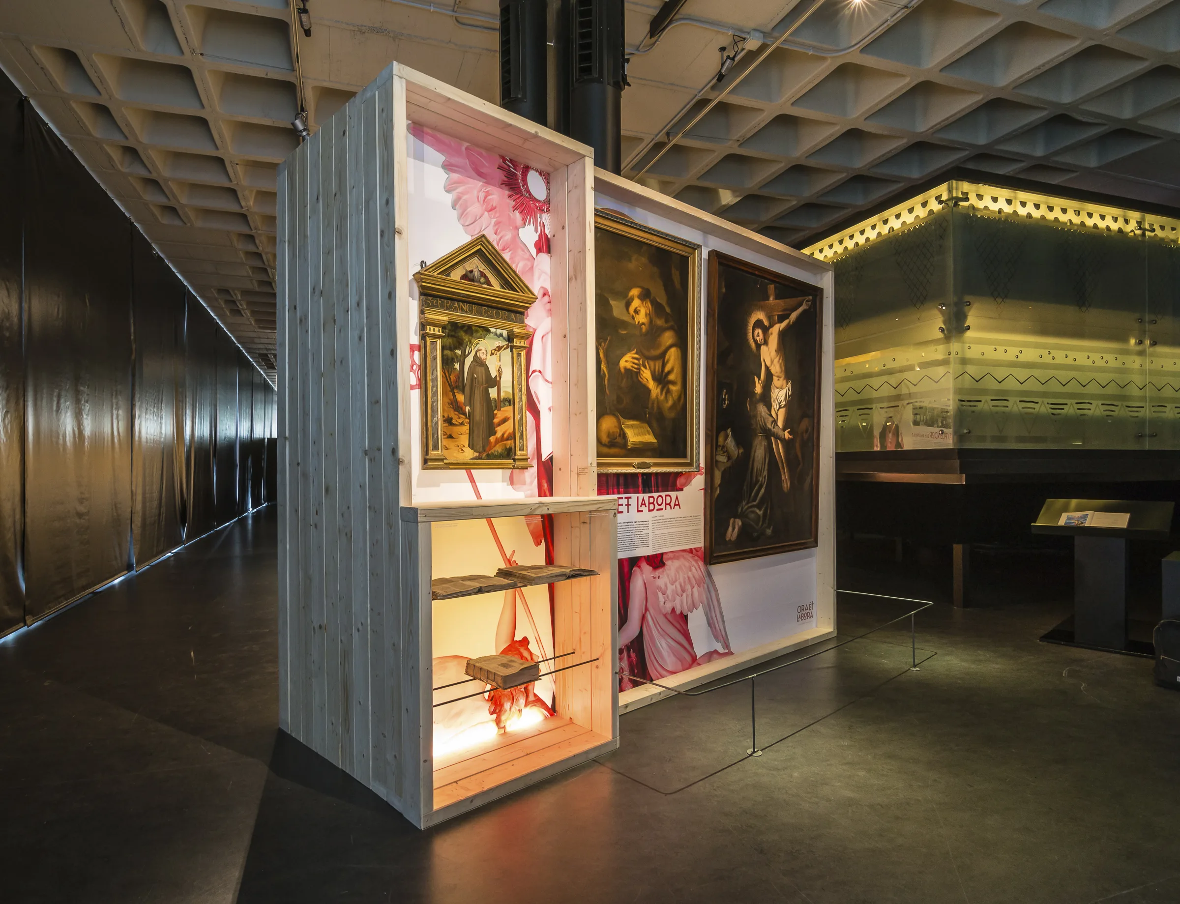 El diseño museográfico de la muestra se centró en proporcionar una narrativa visual y contextual rica, utilizando elementos históricos y testimonios para crear una experiencia inmersiva. La exposición incluyó piezas destacadas como el pergamino original de la fundación del primer convento, dos imágenes veneradas por las monjas, un dibujo de 1865 que documenta el antiguo convento y un libro de actas original preservado en el archivo de la orden. Estos objetos se presentaron en vitrinas cuidadosamente diseñadas para resaltar su relevancia y facilitar la apreciación detallada por parte del visitante.