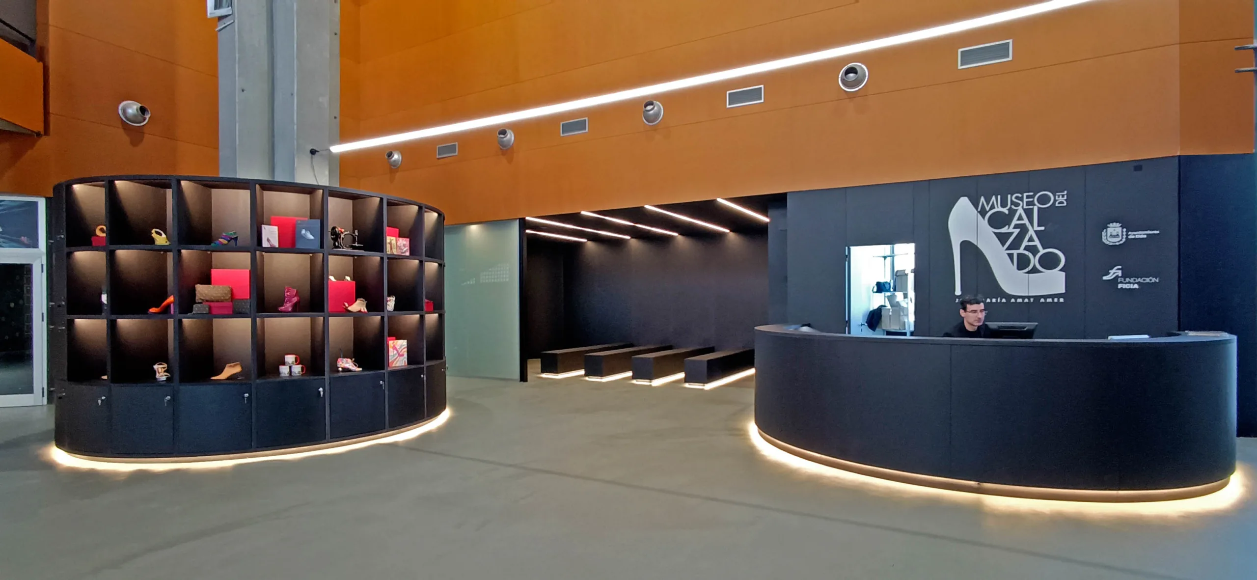 El proyecto ha incluido mejoras en iluminación, pavimento y señalética para garantizar la orientación del visitante. La intervención en la recepción y los espacios expositivos ha priorizado la accesibilidad, incorporando elementos adaptados a personas con movilidad reducida. Esta adecuación ha transformado la llegada al Museo del Calzado, convirtiéndola en un umbral que fusiona identidad, funcionalidad y narrativa museográfica