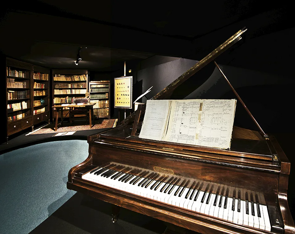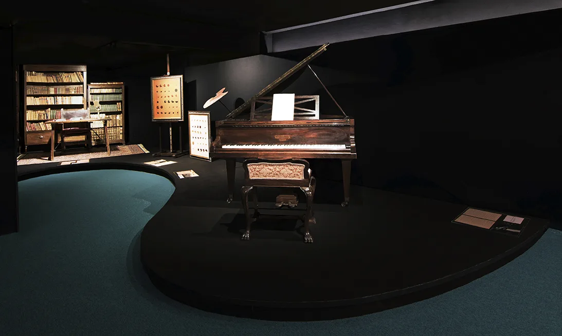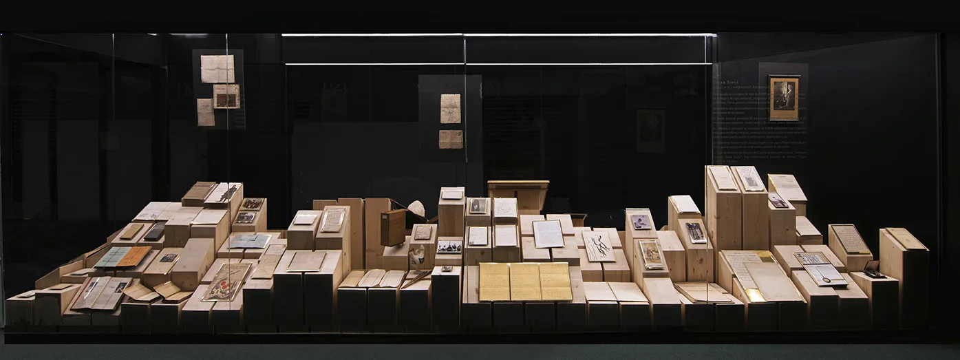 Se optó por un material natural, la madera, como base para todo los documentos expuestos. Materia natural procesada, convertida en lienzos, correspondencia, pinceles, caballetes, libros, partituras musicales, etc., a fin de cuentas, todos documentos naturales que ahora se posicionan frente al mundo digital y se exponen aquí para comunicar al visitante que el formato es doblemente valioso: