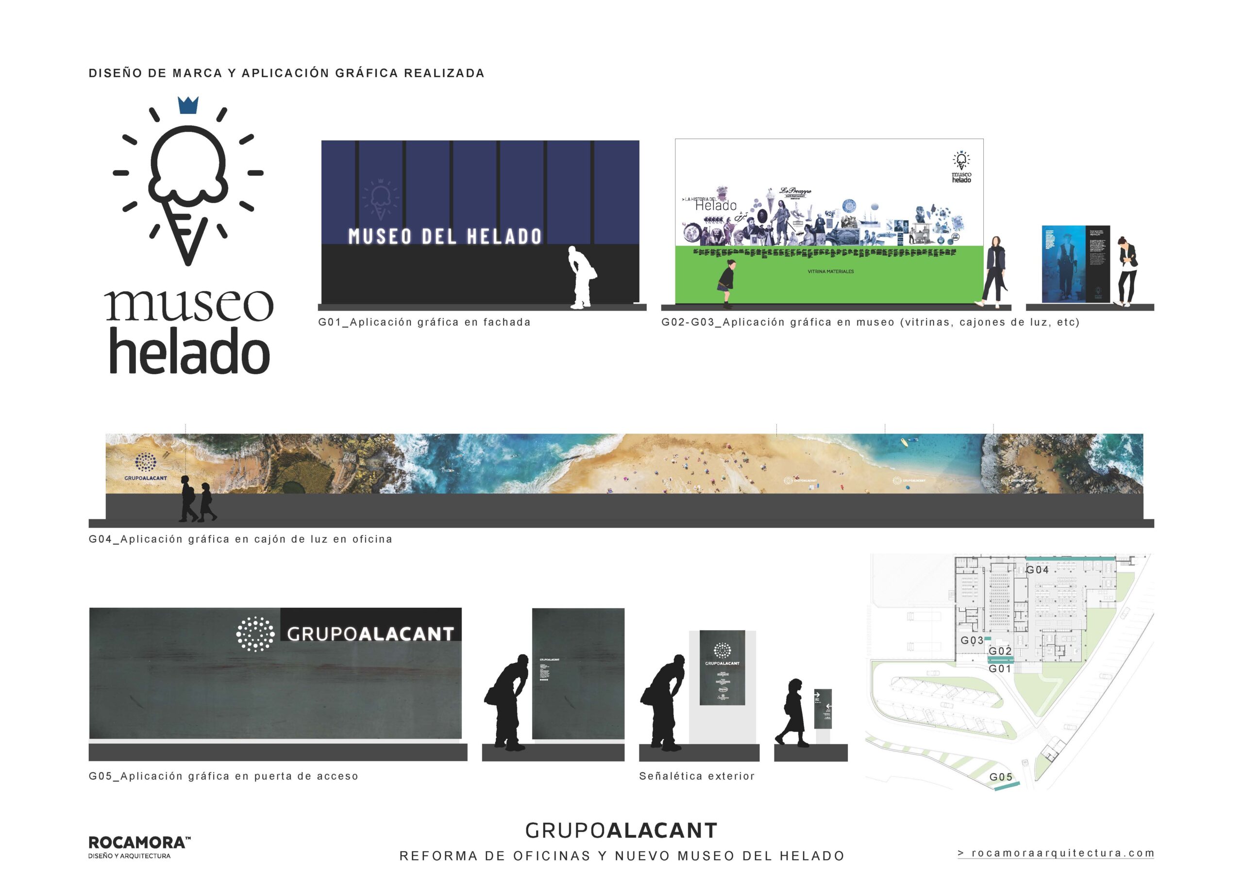 El proyecto ha desarrollado tanto la intervención arquitectónica, museográfica, intervención urbana exterior, así como el diseño gráfico y audiovisual del espacio museográfico donde se ha llevado a cabo también el desarrollo de contenidos históricos. Además, se han realizado aplicaciones y señalética interior en los espacios de trabajo, así como las aplicaciones de marca. El proyecto se comunica con el visitante y el usuario a través de una dicción gráfica contemporánea, a través de la memoria y el ADN de Grupo Alacant, su historia y el carácter empresarial que les caracteriza.