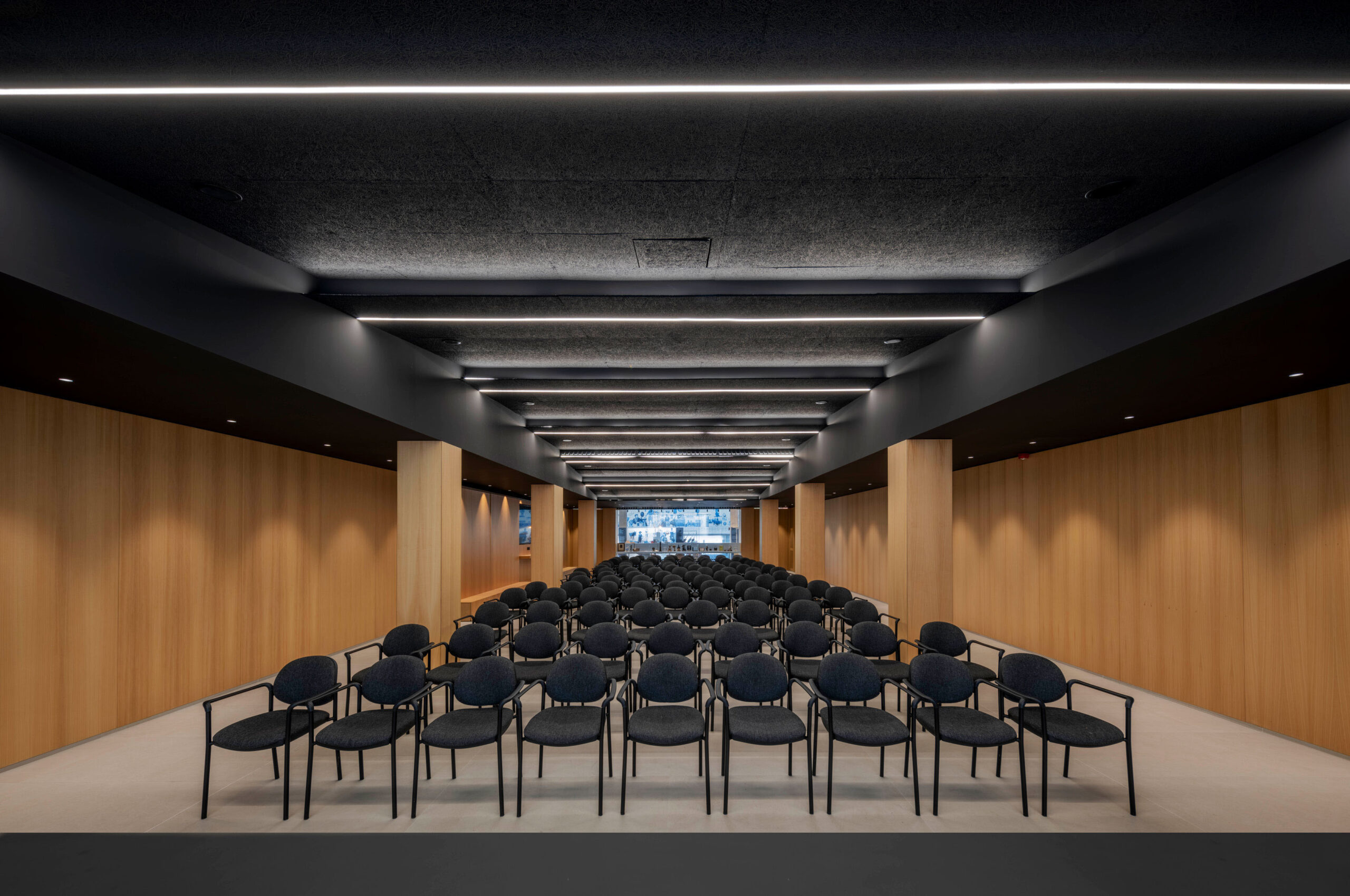 Otro de los puntos principales del proyecto ha sido el compromiso del grupo empresarial con el Medio Ambiente a través del uso del agua reciclada producida en el proceso industrial, empleada ahora para el riego de un nuevo jardín vertical, de la vegetación de la cubierta en la zona del aparcamiento, o toda la empleada en los cuartos húmedos interiores de las zonas remodeladas como aseos, comedor, zonas de office, etc.