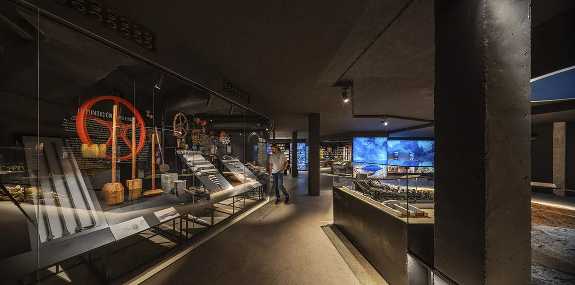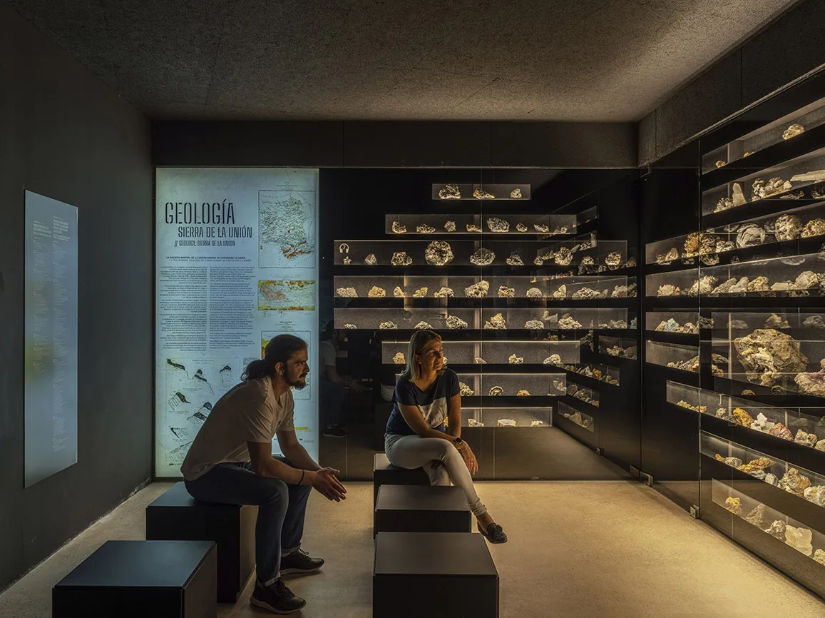 Una museografía inmersiva, con rigor histórico y científico, de gran carga didáctica y divulgativa, que incluye la perspectiva de género en su discurso recuperando el papel de la mujer en el entorno minero. Un discurso expositivo que no sólo exhibe la historia de la minería desde una perspectiva científica e industrial, sino que también fomenta el compromiso con el medio ambiente, recuperando los graves sucesos del desastre de Portmán, y coloca el foco protagonista en el paisaje social y en el papel de la mujer en el proceso productivo y transformador de esta sociedad.