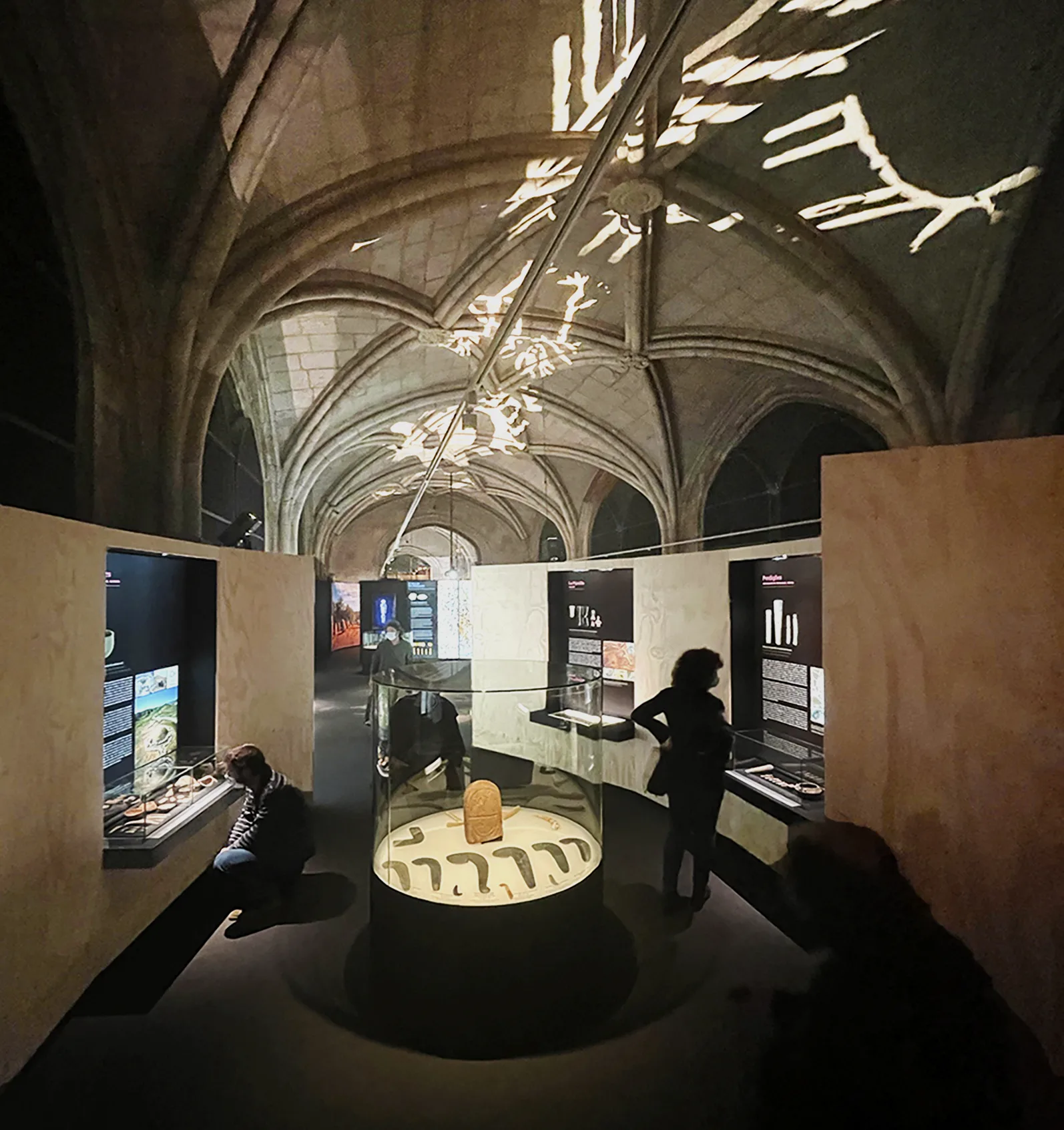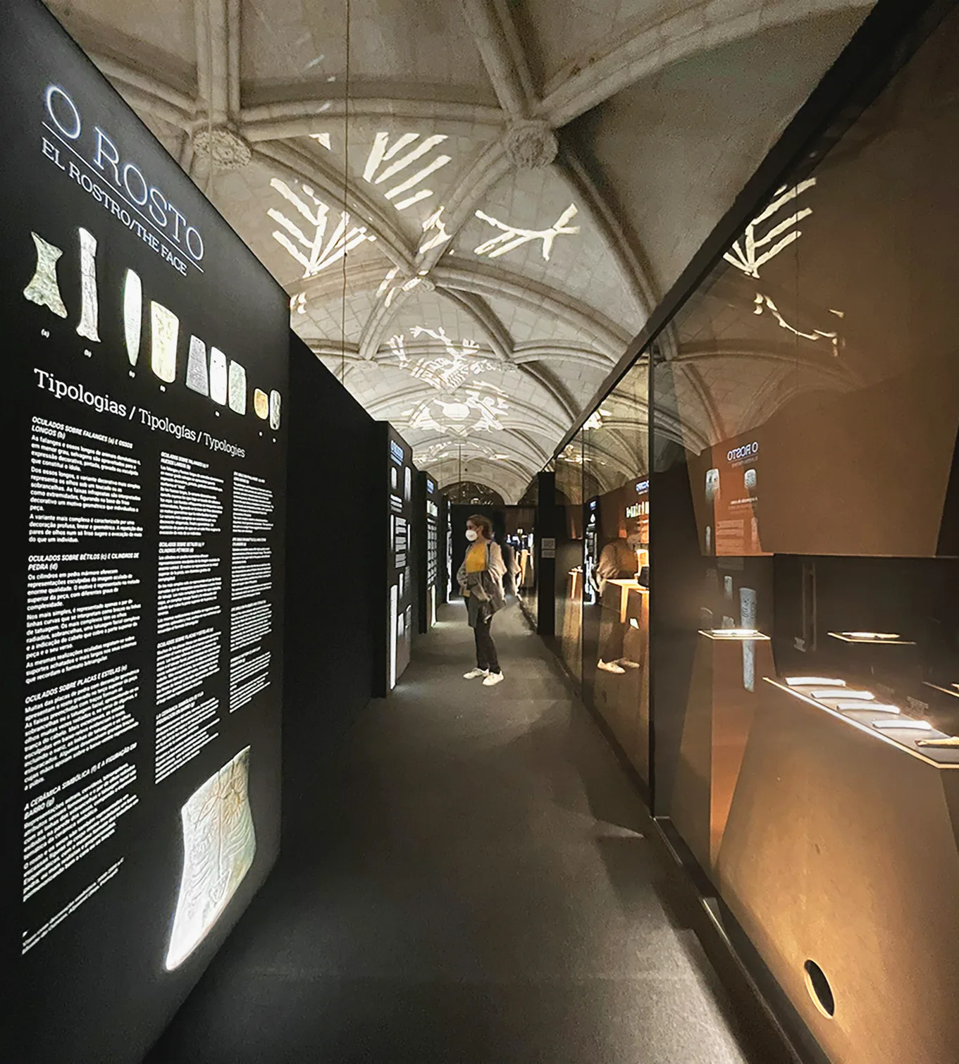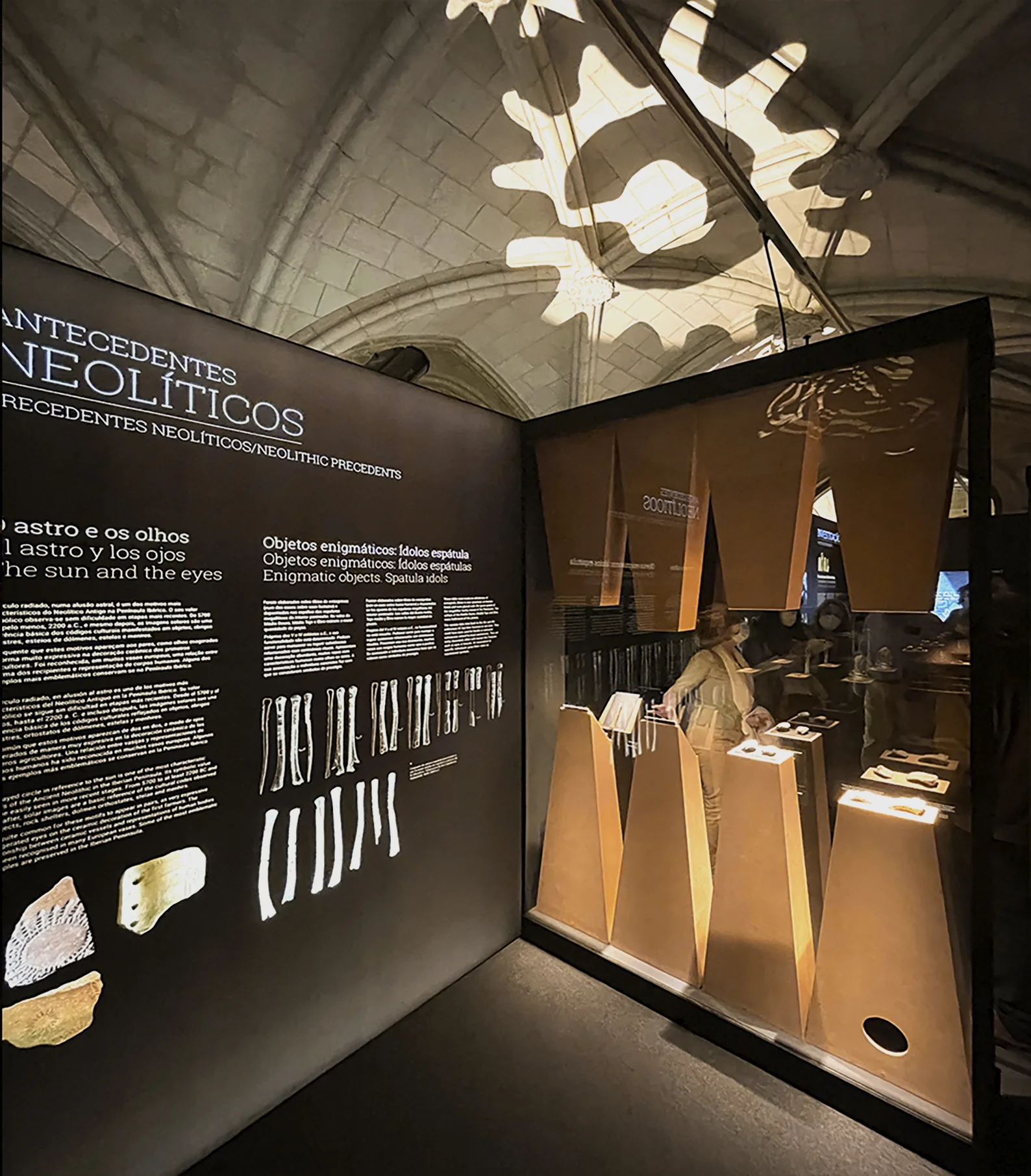 Desde el acceso al pasillo uno, el visitante puede poner en contexto el objeto, la arquitectura del objeto y la escala humana, a través de un conjunto de dos esculturas con los ojos pintados en rojo, una de ellas elaborando un ídolo, y detrás un contexto de lugar de la escena, un dolmen.