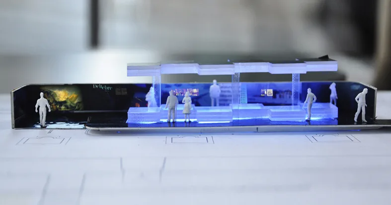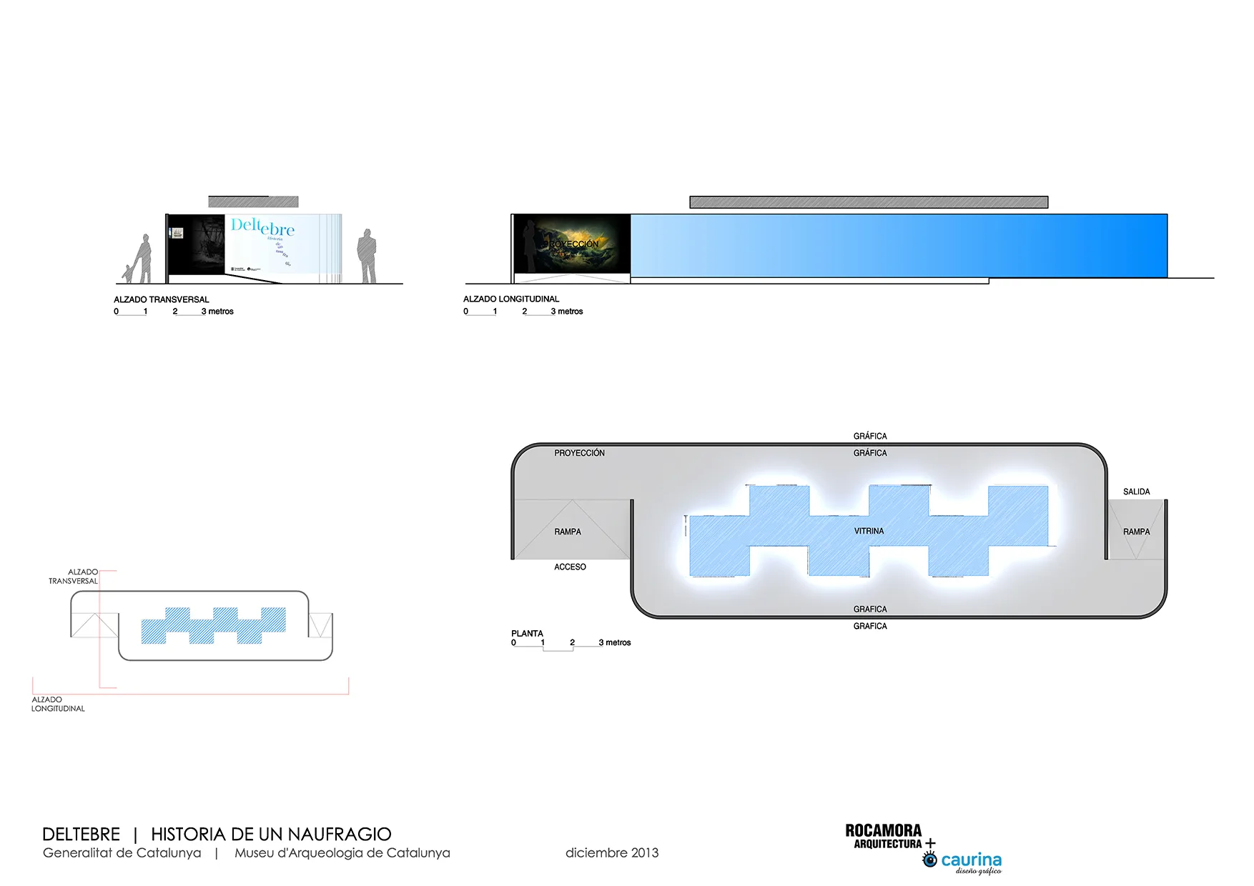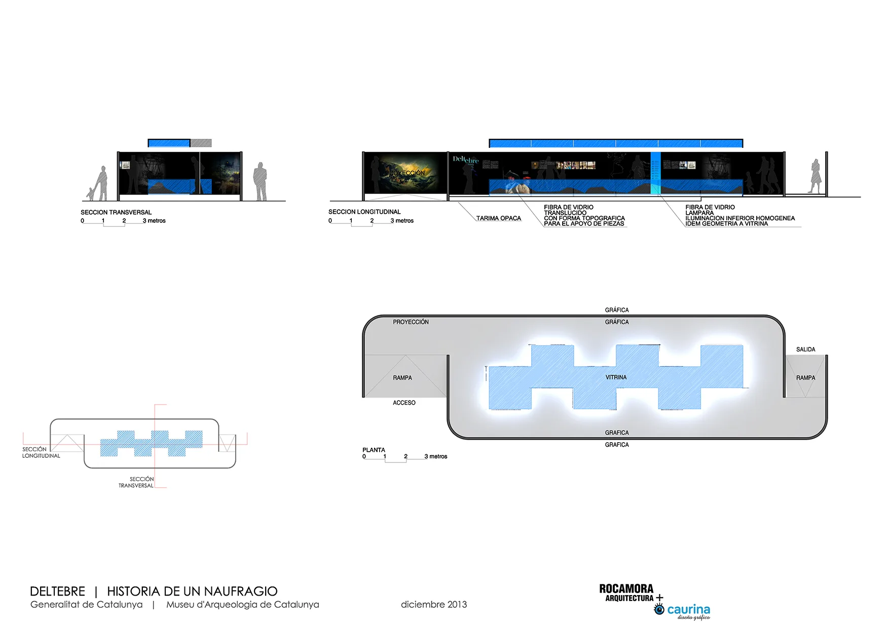 La exposición «DELTEBRE I. Historia de un Naufragio», diseñada para el Museu d’Arqueologia de Catalunya, recreó de manera envolvente y evocadora el descubrimiento de un naufragio del siglo XIX ocurrido durante la Guerra de la Independencia Española. El espacio expositivo se articula en torno a una narrativa que reconstruye el naufragio, modulando sus límites para definir la nave con una proa y una popa simbólicas, creando una atmósfera que traslada al visitante al fondo del mar.