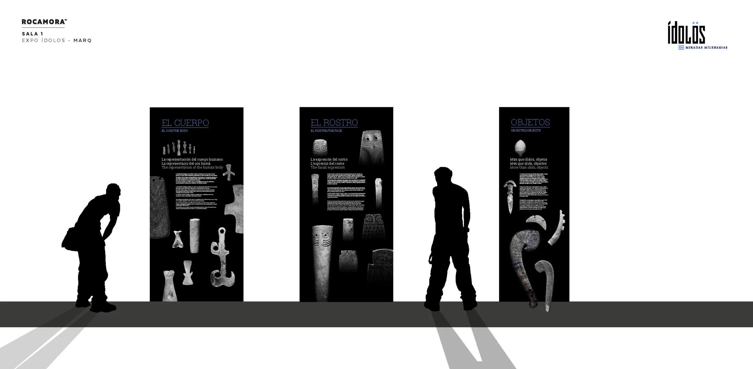 La primera de ellas habla de tipología, expone al visitante a situaciones tipológicas del ídolo en relación con el usuario y su cuerpo, y otras situaciones geográficas, en relación a la península ibérica. La segunda sala habla del lugar y del posible uso del ídolo. Expone al visitante situaciones de uso y lugar de hallazgo. La arquitectura museográfica narrativa habla del espacio de la vida, el espacio de la muerte, el poblado, el enterramiento, la vida cotidiana, lo ritual.