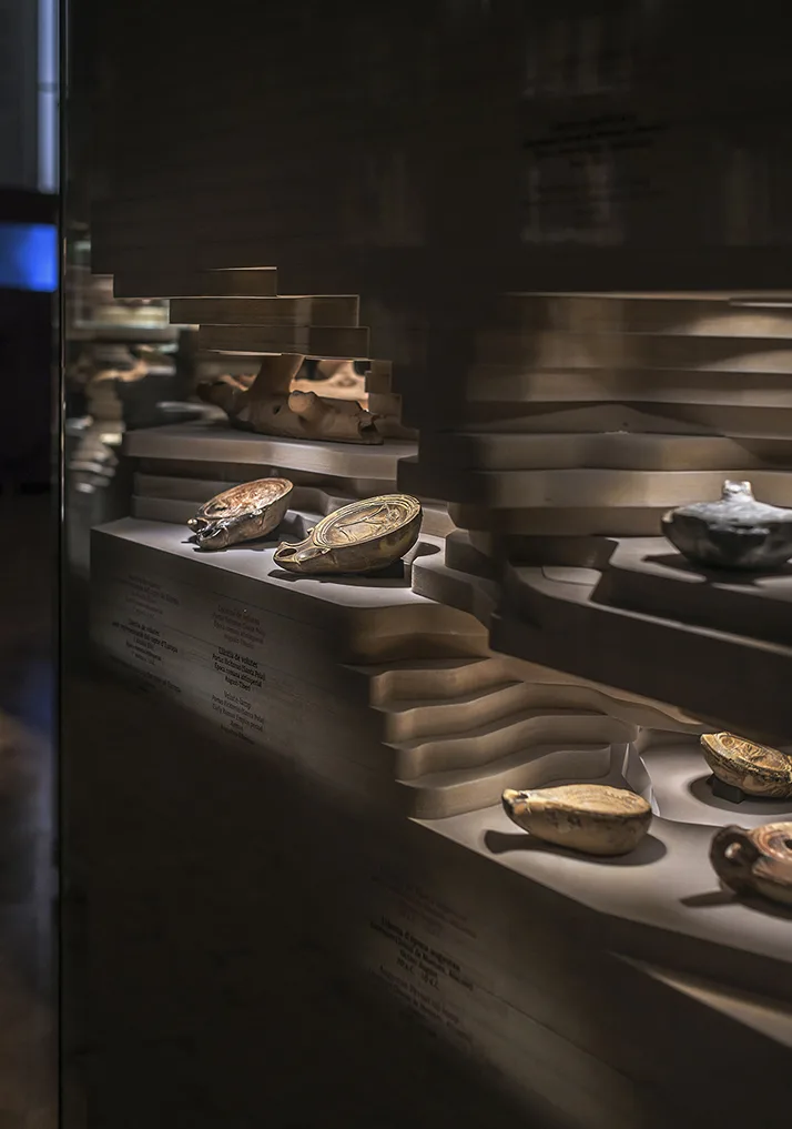La exposición temporal itinerante “Luz de Roma” destacó por su enfoque innovador en la arquitectura museográfica, integrando la luz como un elemento patrimonial clave. Esta muestra sobre candiles de aceite de época romana no sólo reveló la utilidad, forma y decoración de estos objetos antiguos, sino que también utilizó la iluminación para enriquecer la experiencia del visitante.