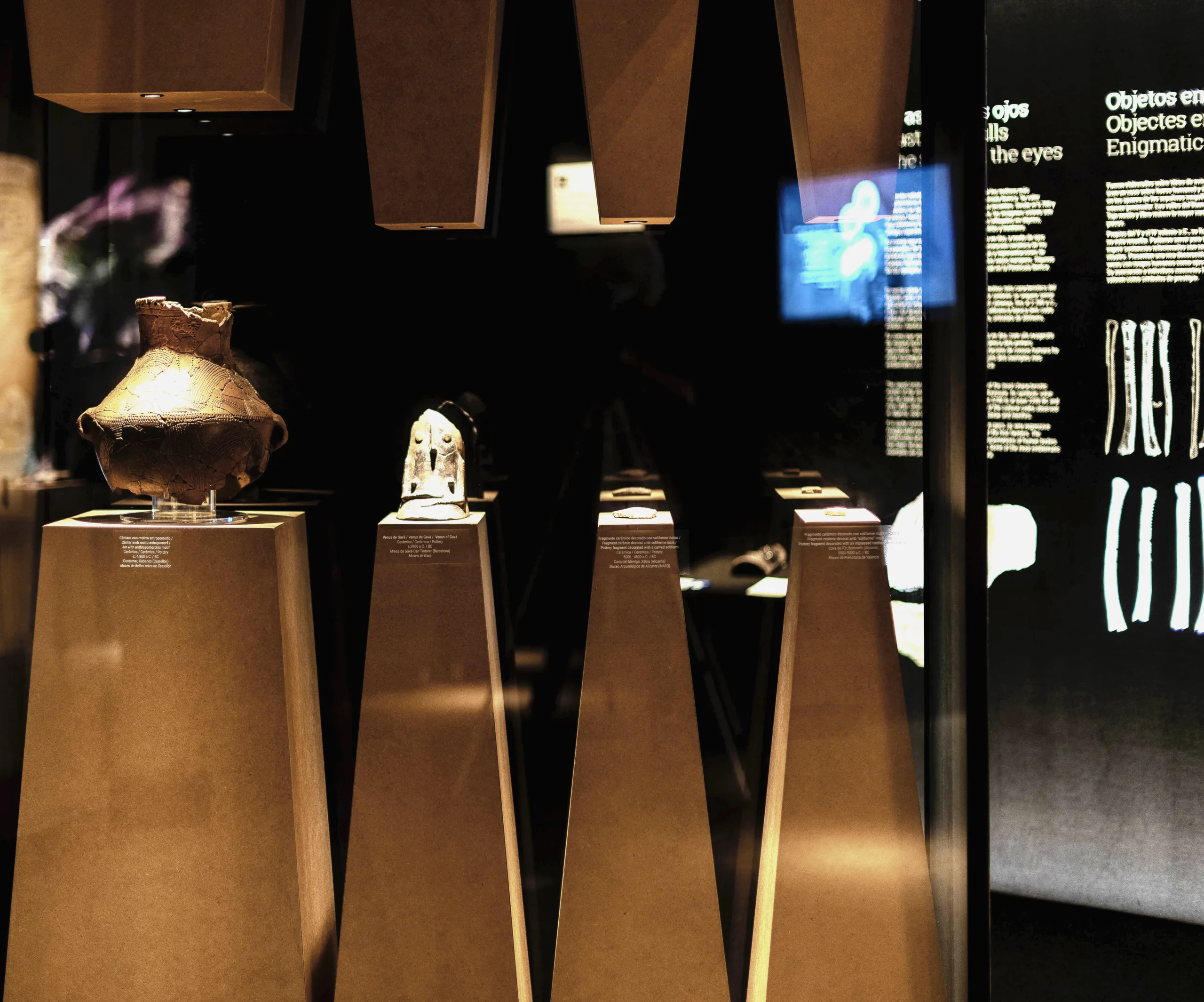 La primera de ellas habla de tipología, expone al visitante a situaciones tipológicas del ídolo en relación con el usuario y su cuerpo, y otras situaciones geográficas, en relación a la península ibérica. La segunda sala habla del lugar y del posible uso del ídolo. Expone al visitante situaciones de uso y lugar de hallazgo. La arquitectura museográfica narrativa habla del espacio de la vida, el espacio de la muerte, el poblado, el enterramiento, la vida cotidiana, lo ritual.