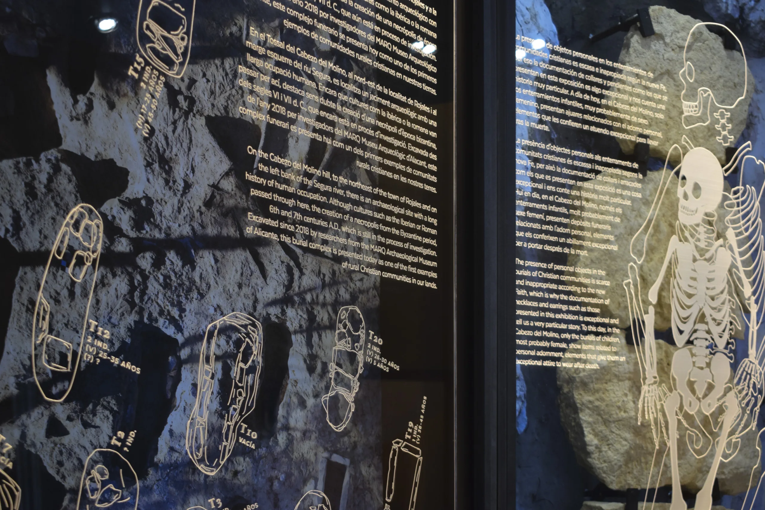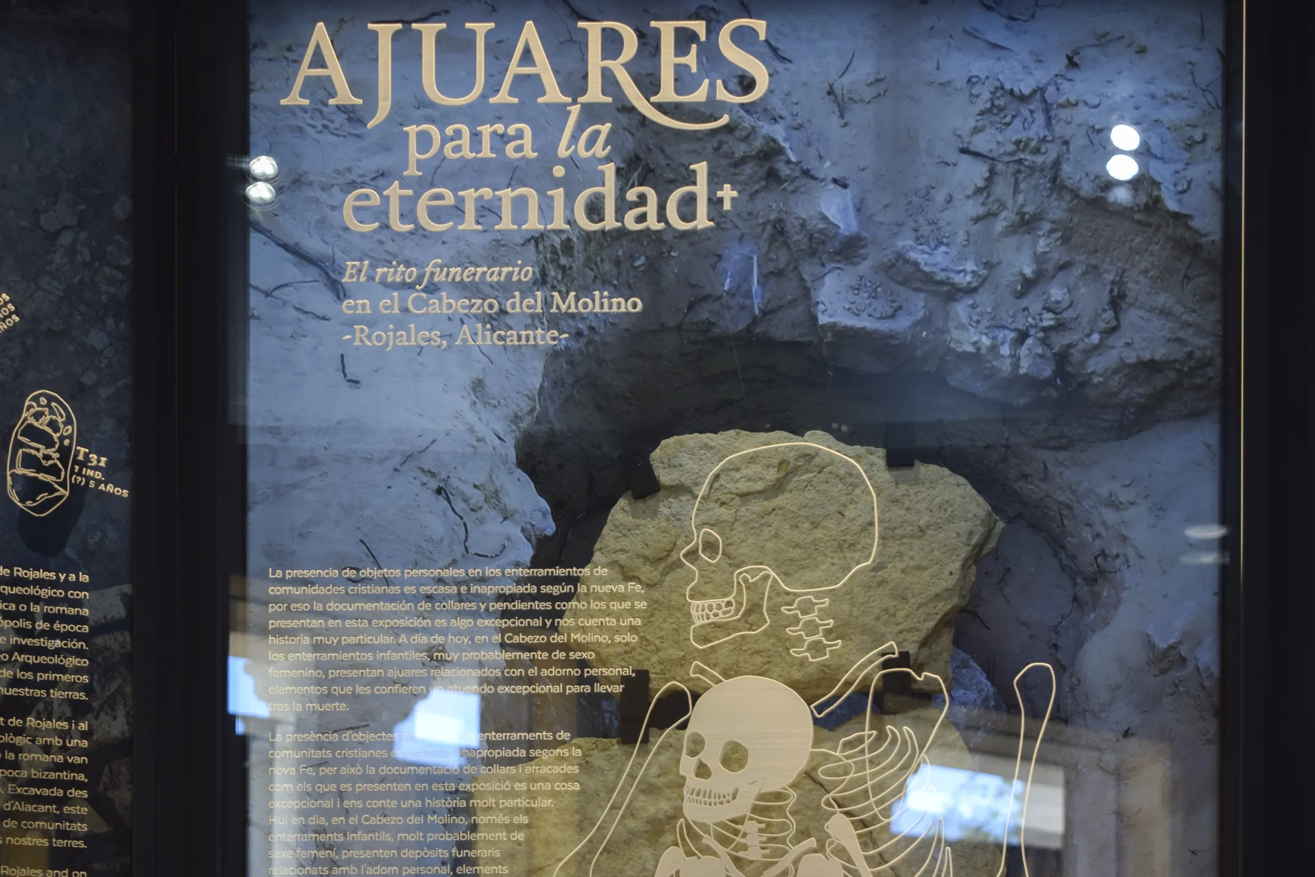 La exposición “Ajuares para la eternidad. El rito funerario en el Cabezo del Molino” se ubica en el vestíbulo del MARQ – Museo Arqueológico de Alicante.