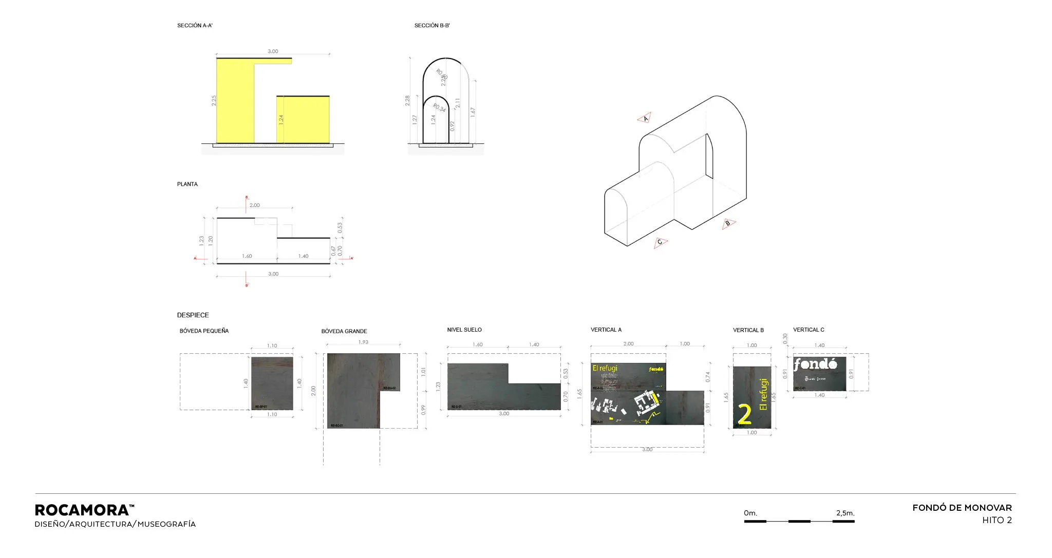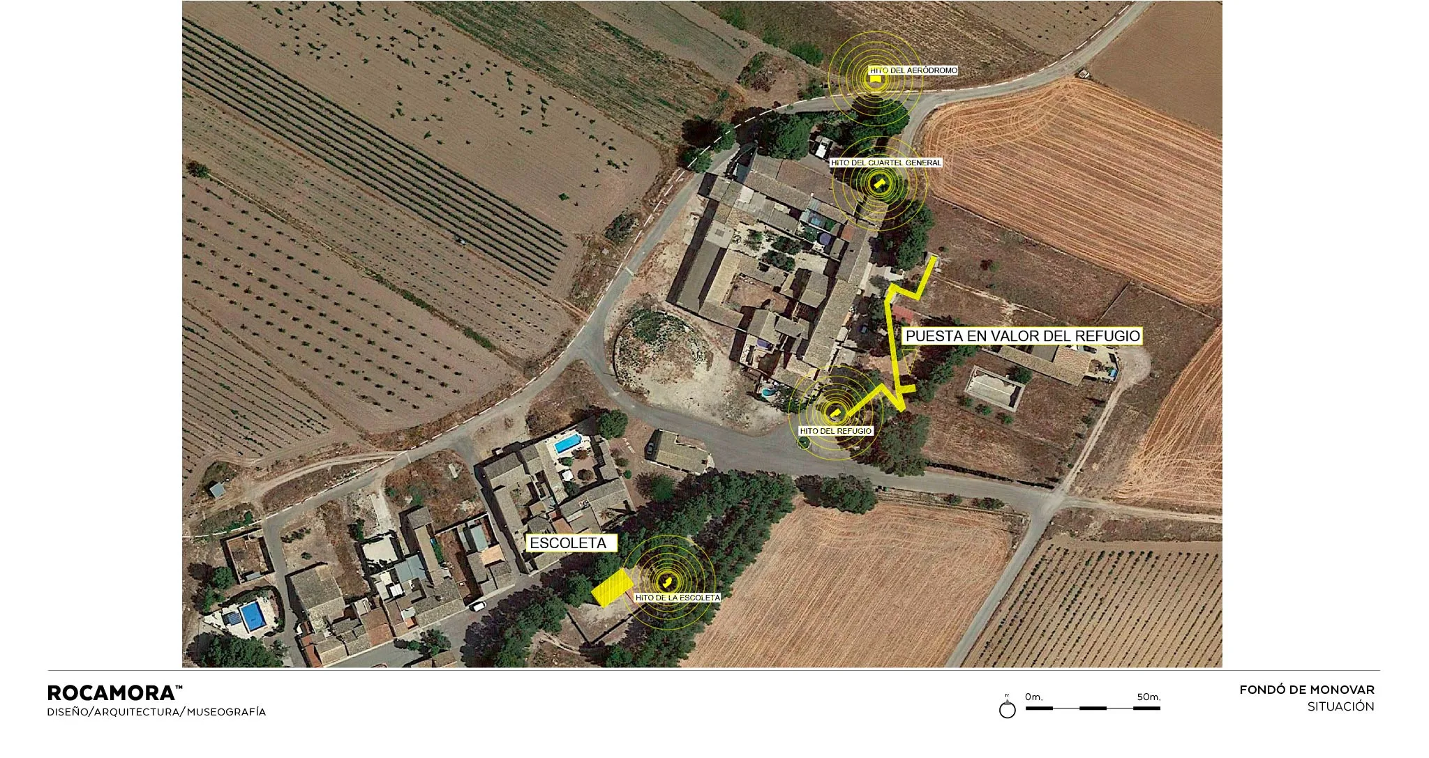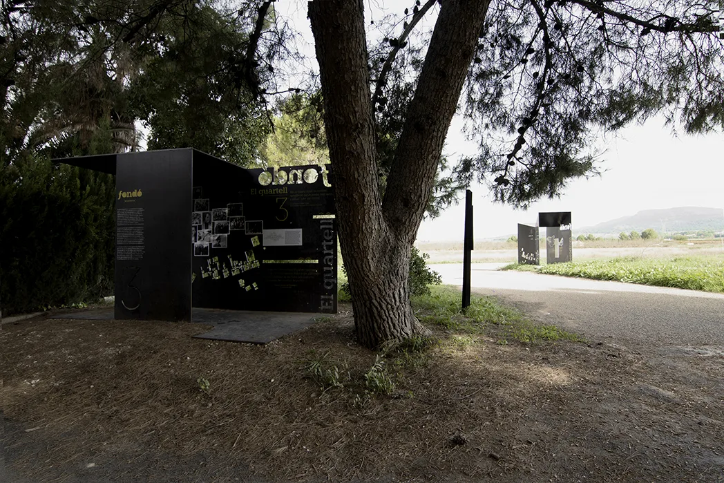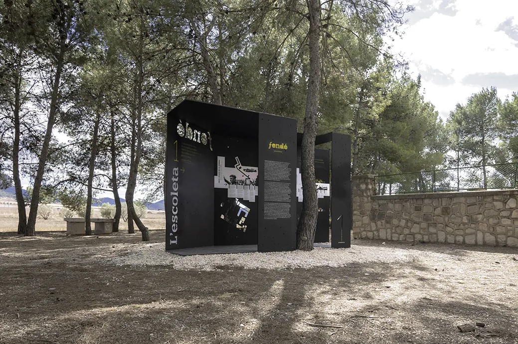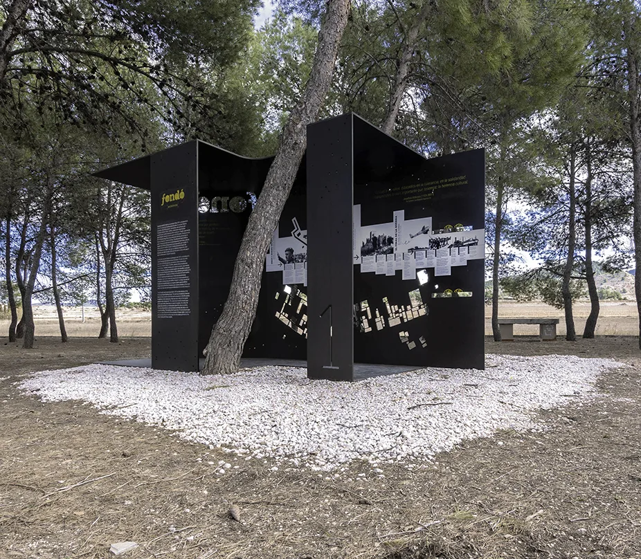 El Museo del Fóndó es libre en su visita, posado en el paisaje, compuesto por cuatro hitos que cuentan la historia del lugar, entrelazado con la pedanía y los caminos y que, como esculturas que hablan, hacen que el visitante pase a ser detalle constructivo de aquello que se cuenta.