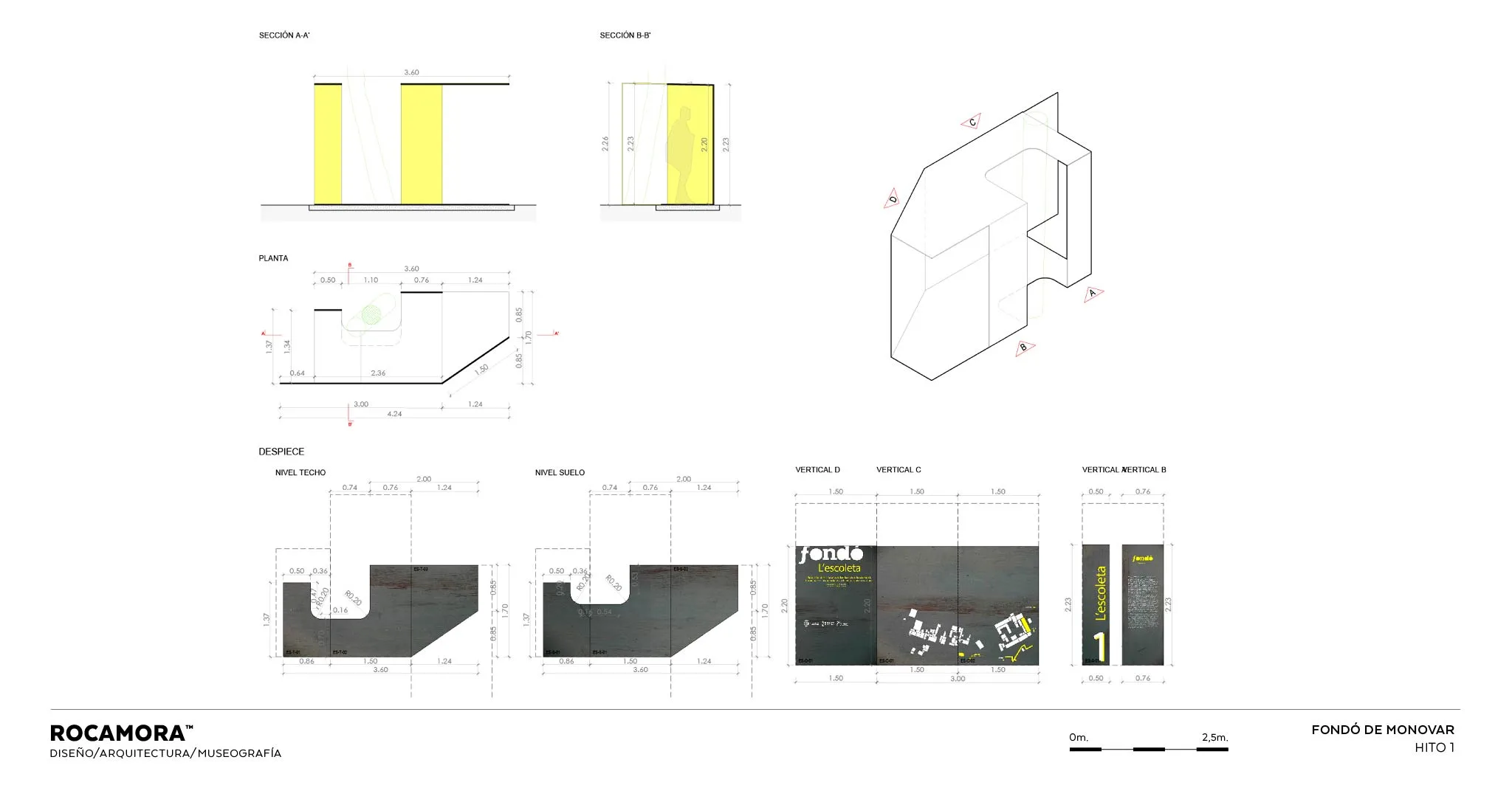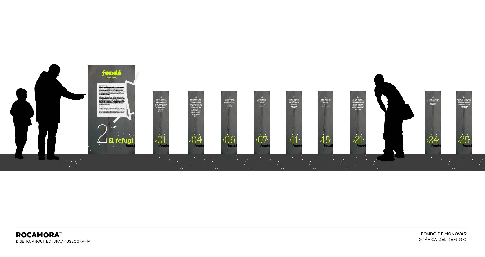 Ante la complejidad inmaterial de casi todo lo que se cuenta y la dificultad de poder hacer un museo visitable, por economía e infraestructura, se optó por repensar el concepto de este espacio y proyectarlo como suma de lugares disgregados que articulan el lugar y que se recorre en su interpretación y disfrute. Estos soportes arquitectónicos generan el hábitat que protege la información en su interior, que comunica en la distancia, que crea la circulación entre ellos y que, con el contacto físico, frio, el visitante percibe su relación íntima.