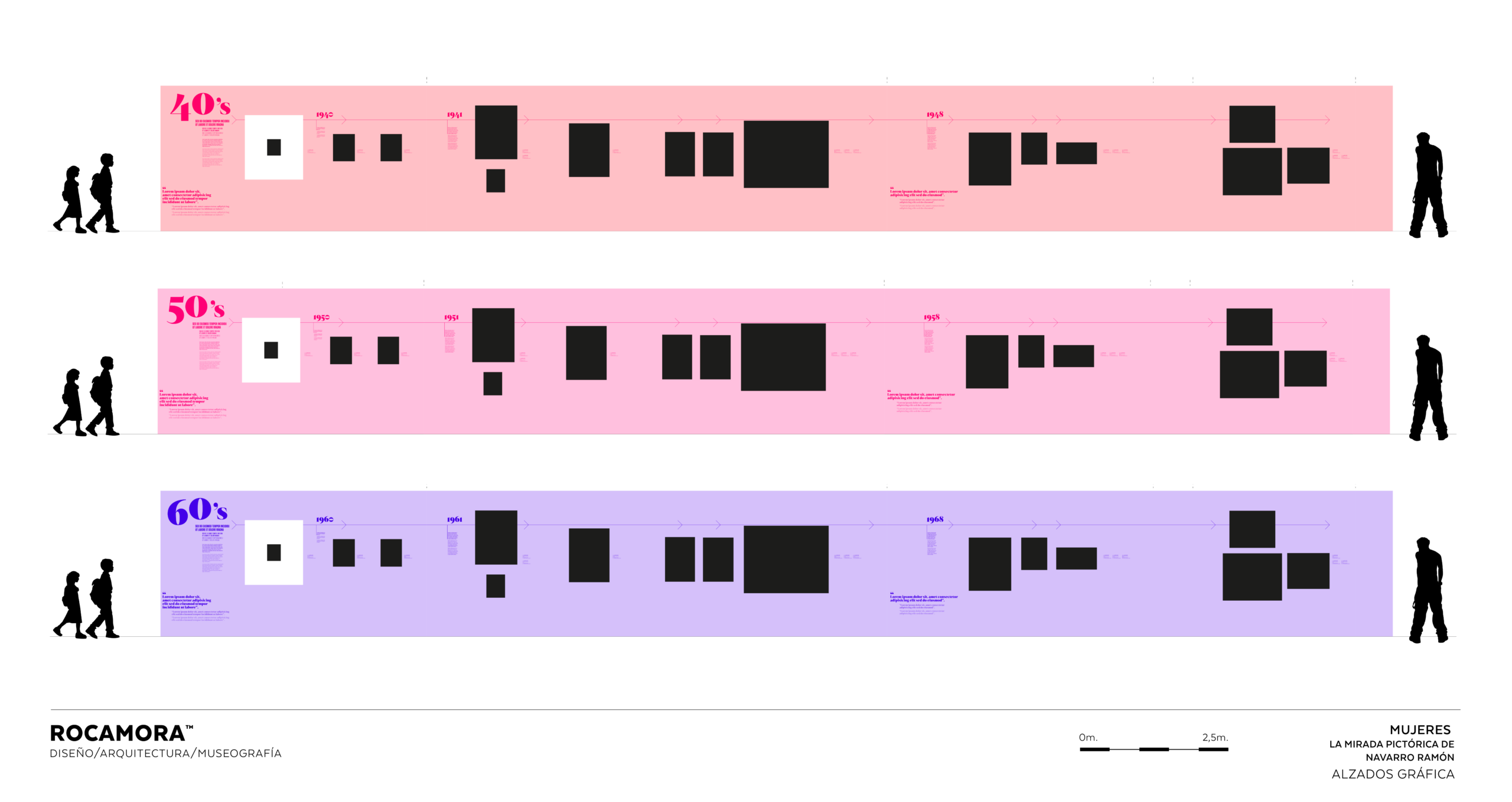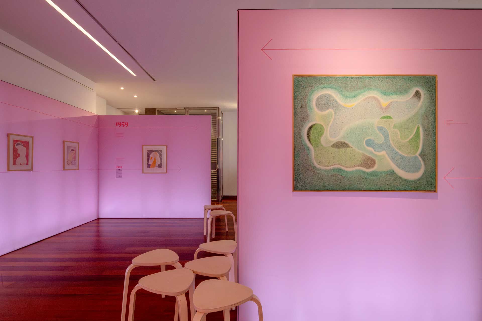 Uno de los aspectos originales de la exposición es el diseño del soporte expositivo ya que toda la información se recoge en una gráfica textil que aparece como un “lienzo continuo”: una galería visual en la que obras, dibujos, litografías y textos se integran en un recorrido fluido, organizado en una línea del tiempo donde se anotan etapas vitales del artista, así como referencias a su compañera museal, Josefa Fisac Martín (1909‑1989), cuya presencia es clave en el relato.