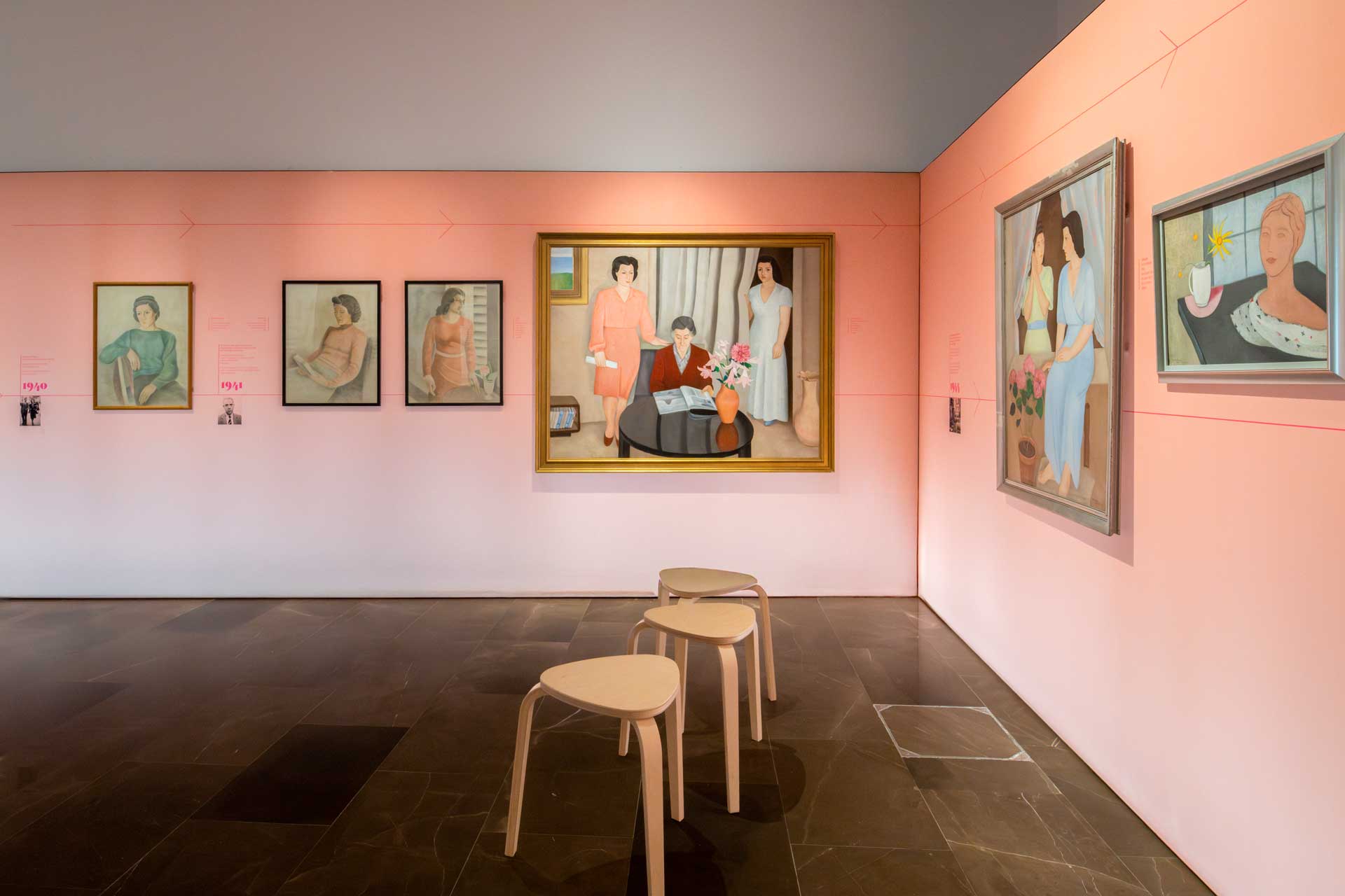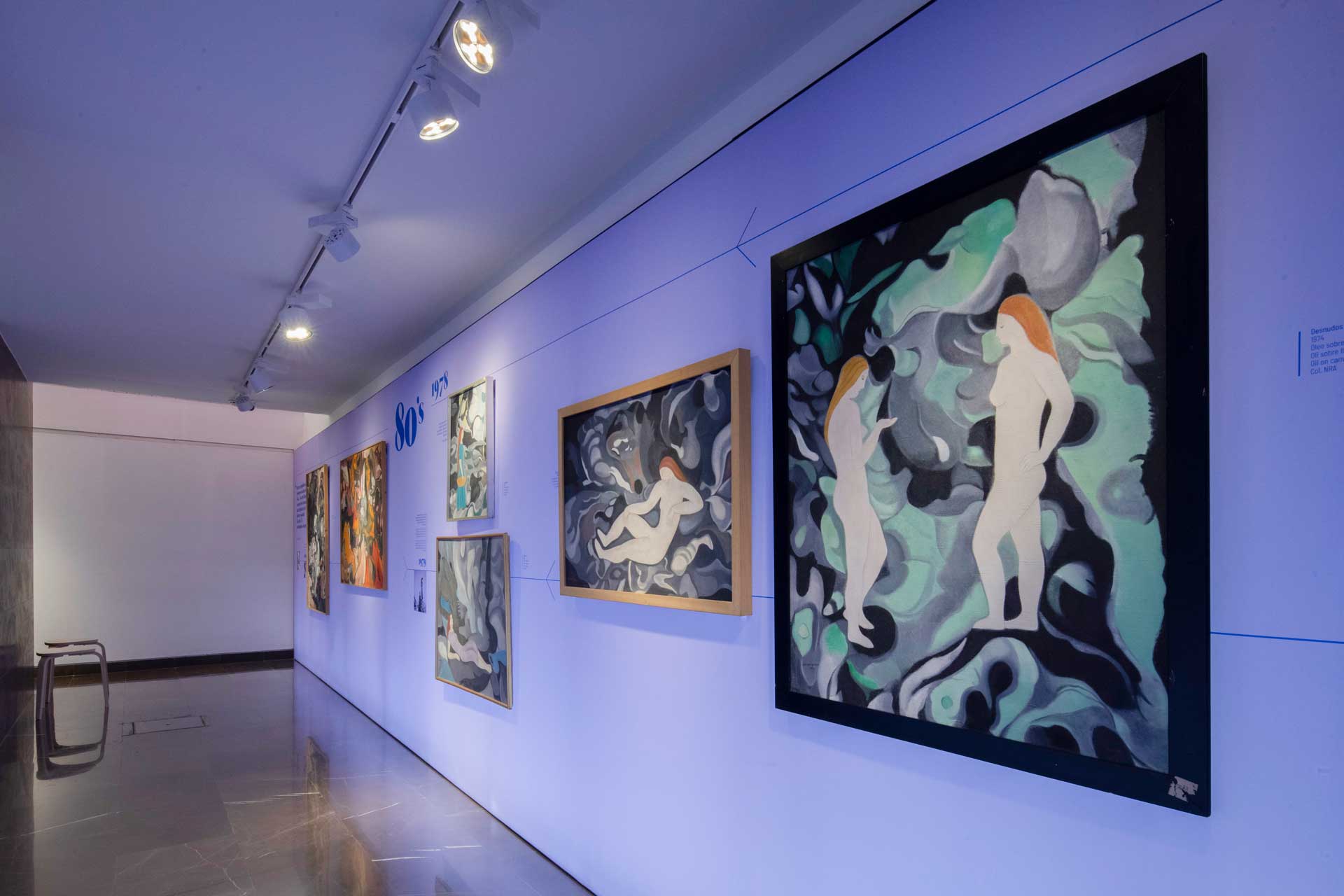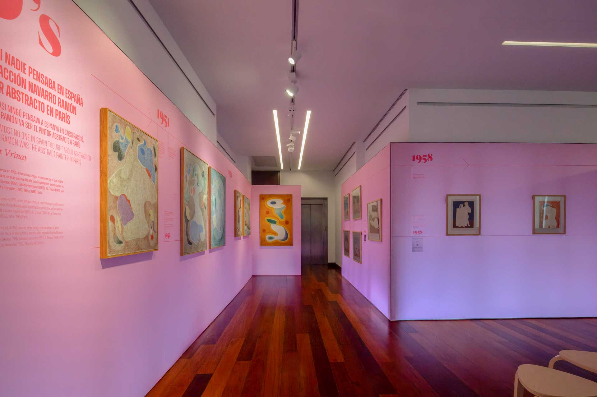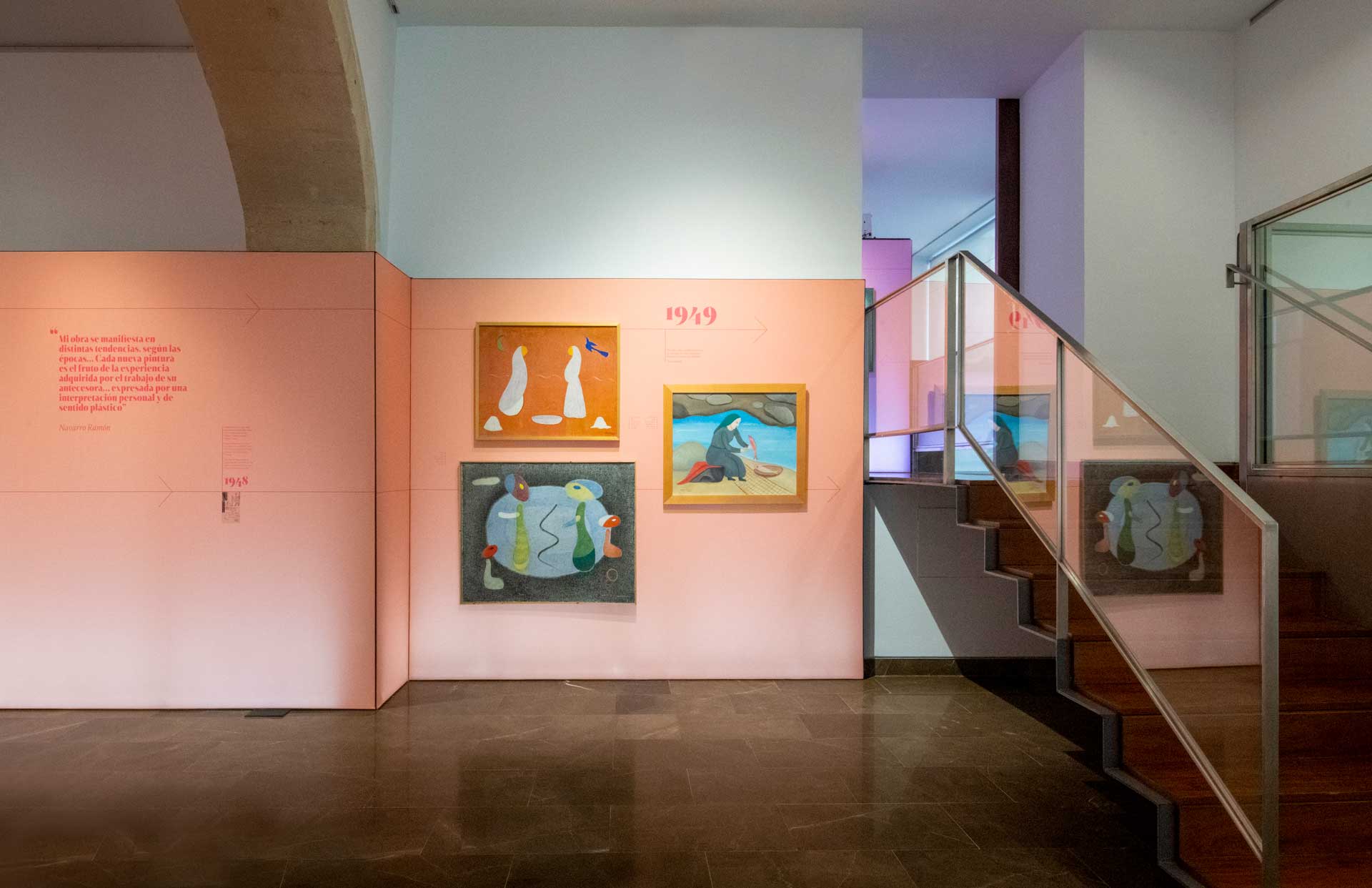 El planteamiento curatorial parte del deseo de articular un discurso doble: por una parte, la figura de la mujer como temática central en la obra de Navarro Ramón —especialmente durante las décadas de los años treinta y cuarenta—; por otra, su paso hacia la abstracción en París durante los cincuenta, ya sin abandonar la centralidad del color y del elemento femenino como punto de partida.