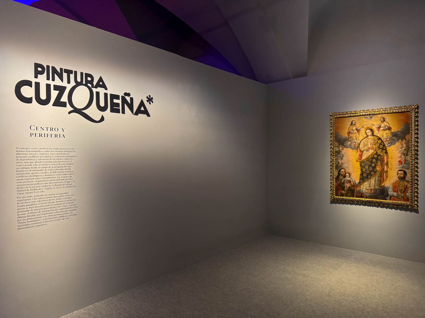 La exposición Pintura cuzqueña. Centro y periferia, en el Museo de América, ofrece un proyecto museográfico que potencia la lectura de este singular conjunto pictórico virreinal. El diseño busca amplificar el valor simbólico, estético e histórico de las obras, dialogando con ellas sin interferir en su presencia y generando al mismo tiempo una experiencia visual contemporánea para el visitante.